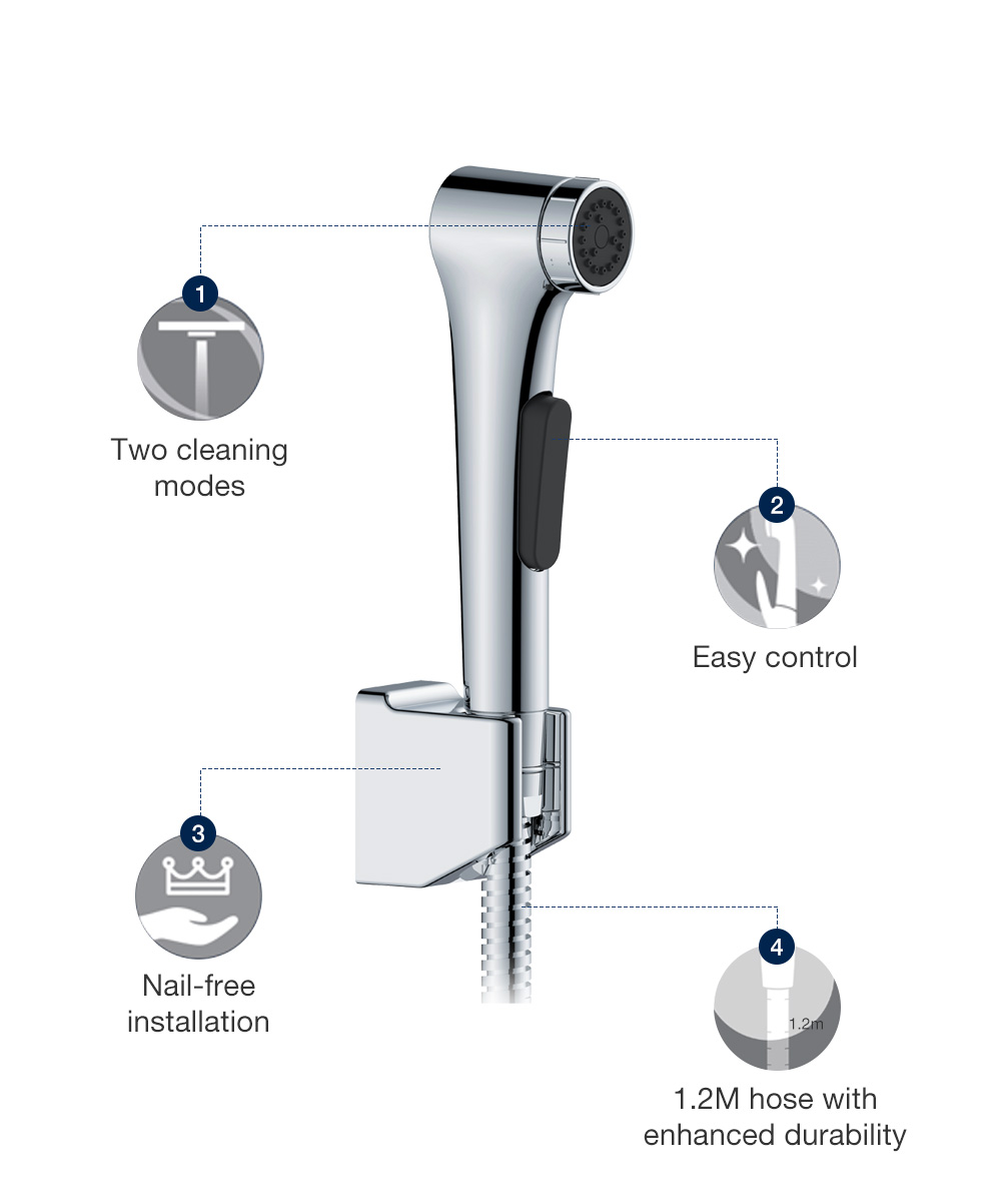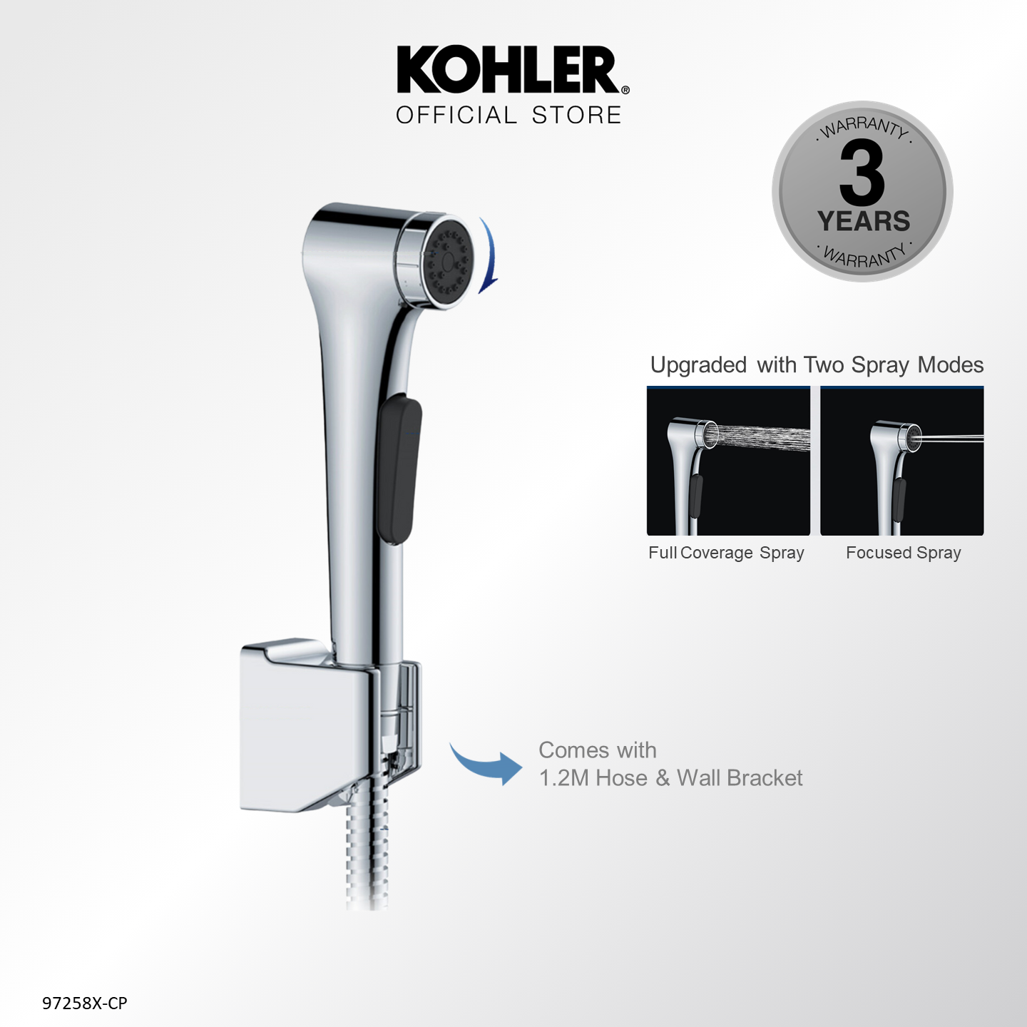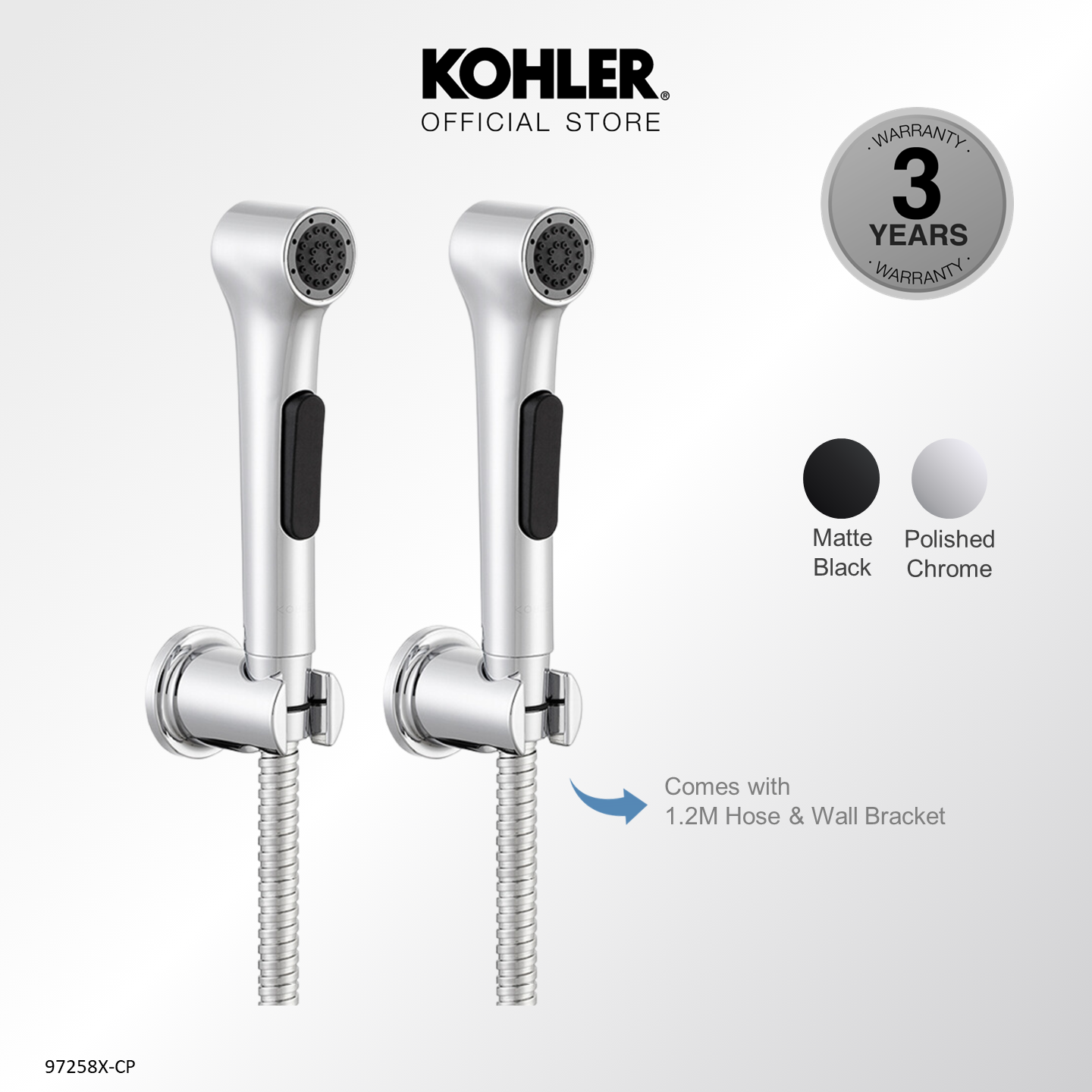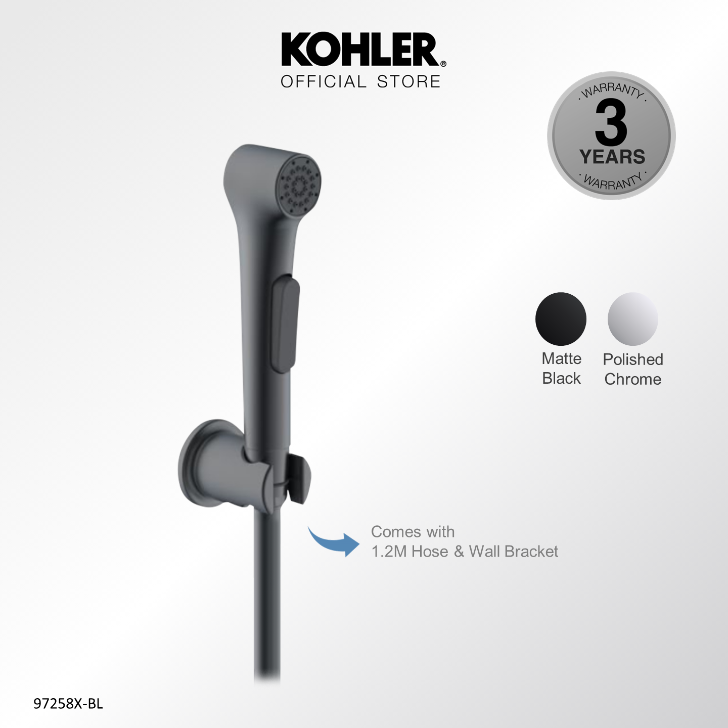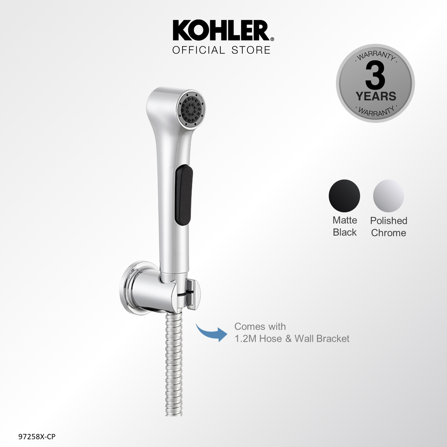 [Upgraded] KOHLER Elate Bidet Spray, Anti-bacterial Hygiene Spray with Wall Bracket & Hose, Polished Chrome 1.0 K-97258X-CP / 2.0 Upgraded K-R29784T-CP / Matt Black 1.0 K-R97258T-B-BL