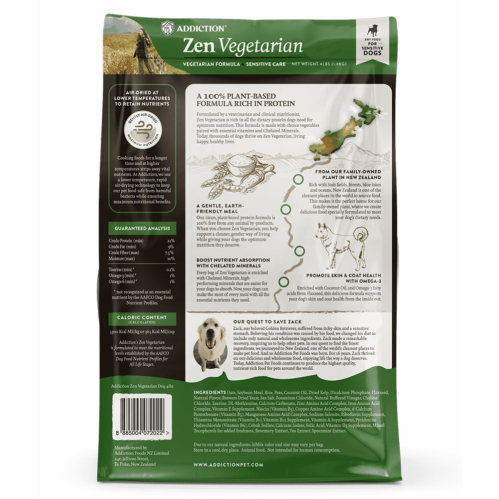 Formulated by a veterinarian and a clinical nutritionist, Zen Vegetarian is ideal for dogs with skin and digestive sensitivities. It’s 100% free-from animal proteins and is made with choice vegetables, essential vitamins, and Chelated Minerals. This holistic vegetarian formula is rich in all the dietary protein dogs need for optimal nutrition. It’s also enriched with Coconut Oil and Omega-3 fatty acids from Flaxseeds to promote healthy skin and coat. Support a cleaner, gentler way of living with Zen Vegetarian.