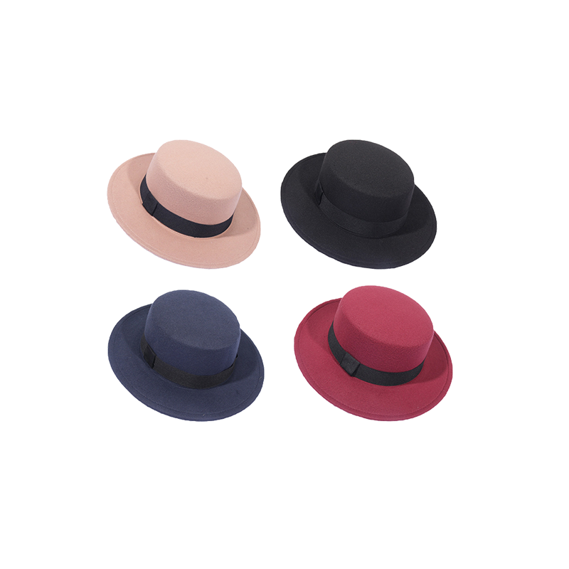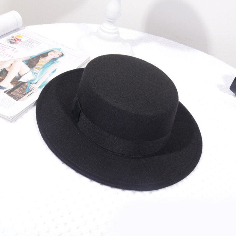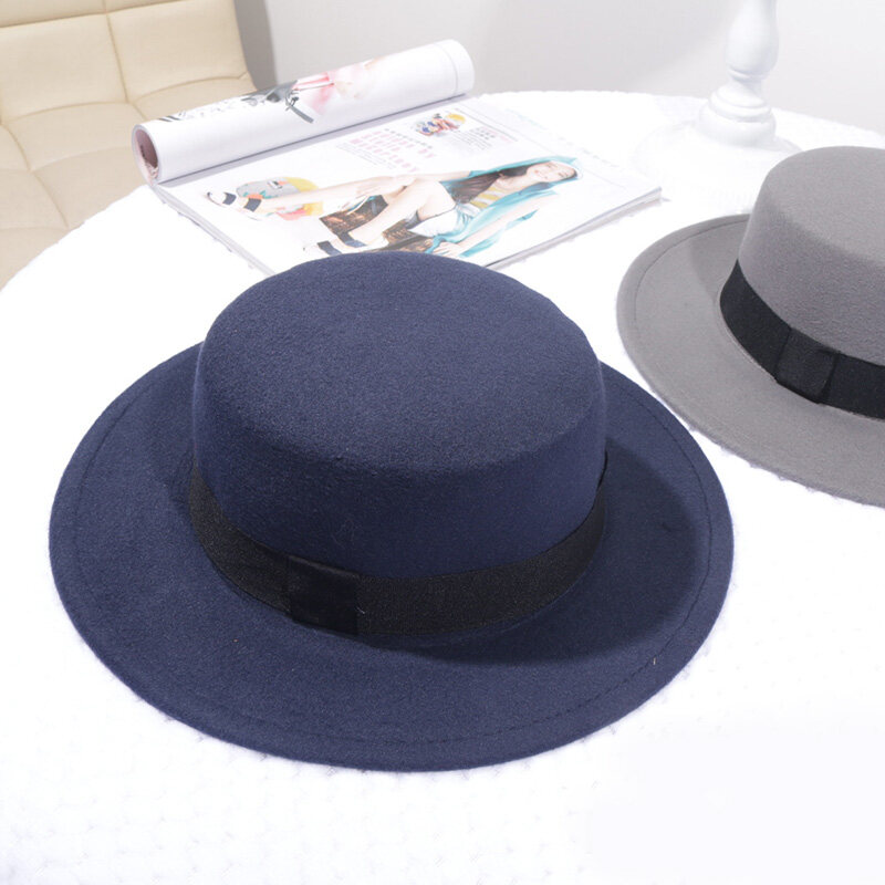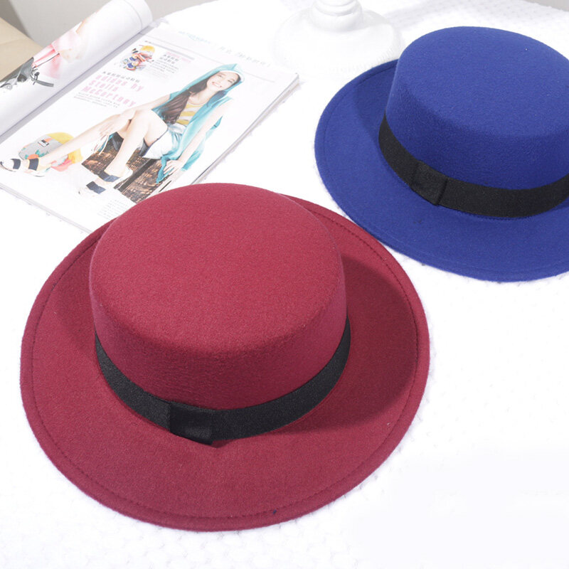 FAITOLAGI Spring Autumn Woolen Women Hat Classic Solid Color Felt Fedoras Hats Female Lady Wide Brim Flat Top Jazz Cap