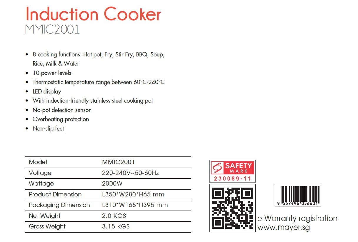 ?FOC pot included? Mayer Induction Cooker [MMIC2001] *10 Level Temp/Hotpot/Fry/Braise/Porridge/Soup*