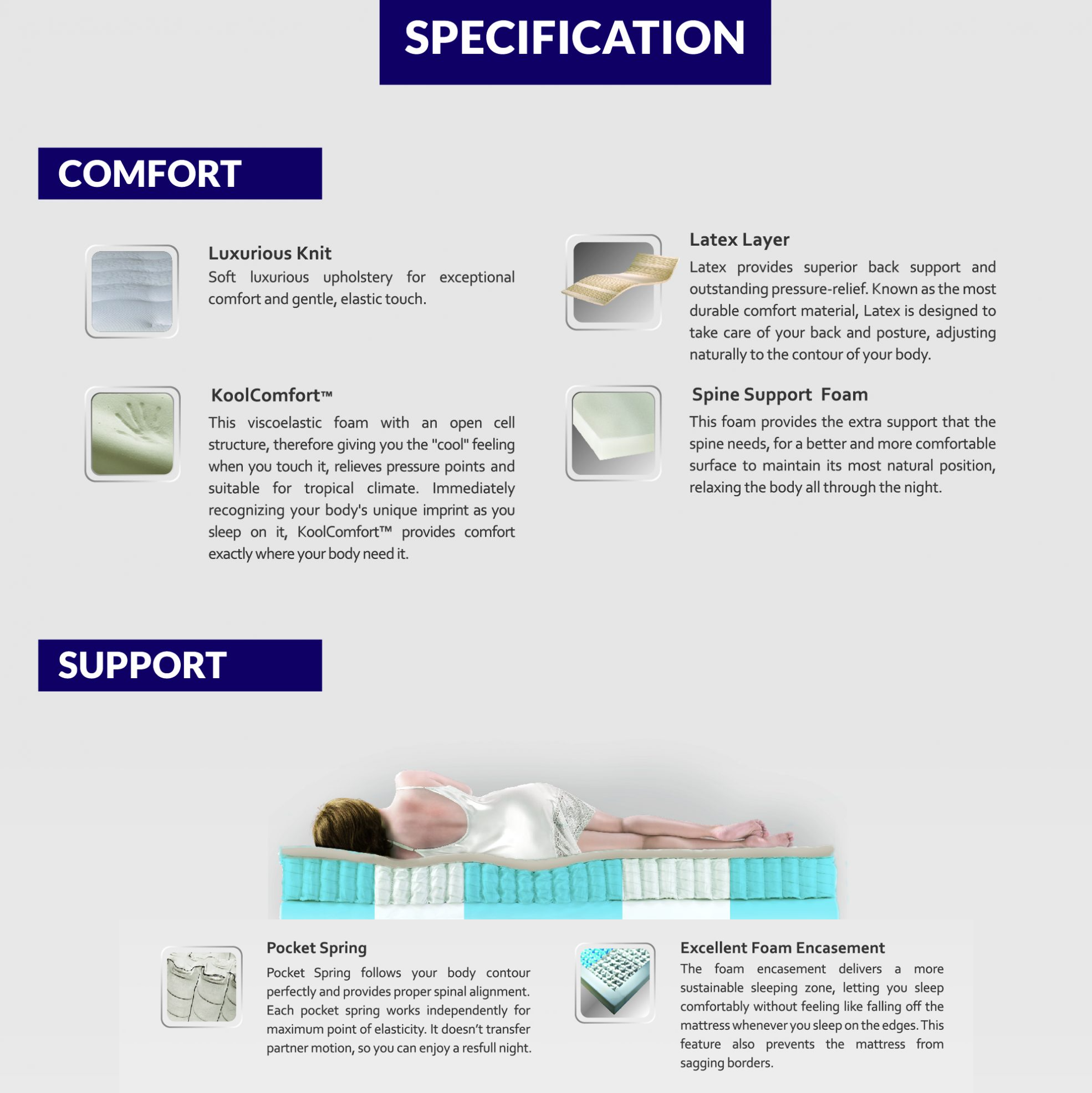 King Koil LUXURY Mattress, Extended Life Collection, Available Sizes (King, Queen, Single, Super Single)