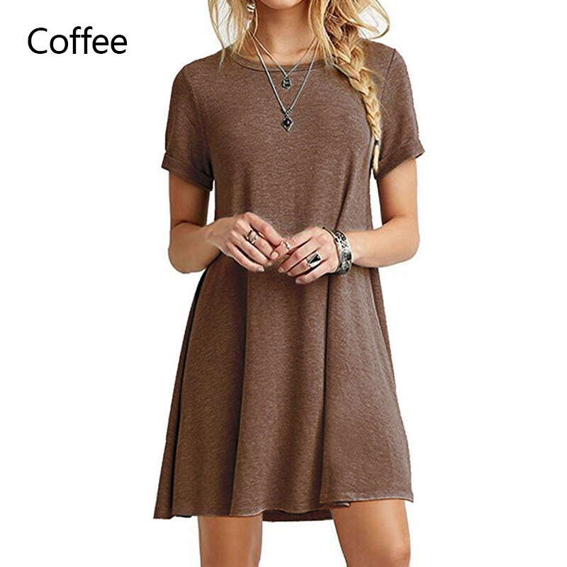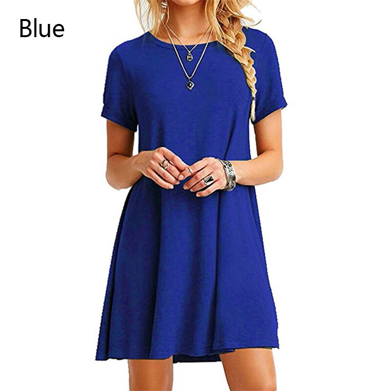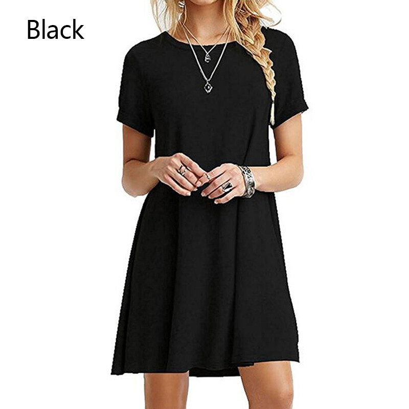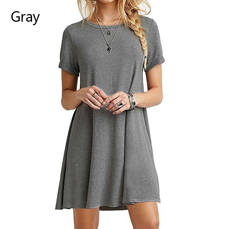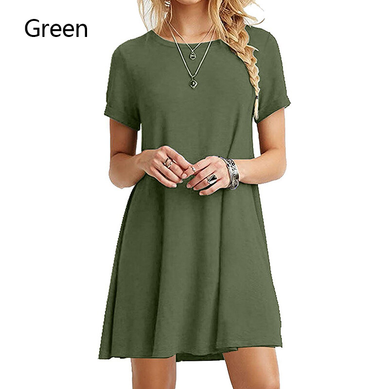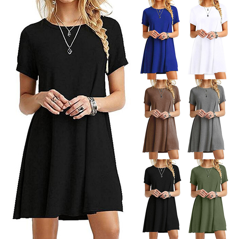 Acquire Women's Solid Color Sundress Short Sleeve Casual T-shirt Dress Loose Summer Girls Plus Size Basic Casual Wear