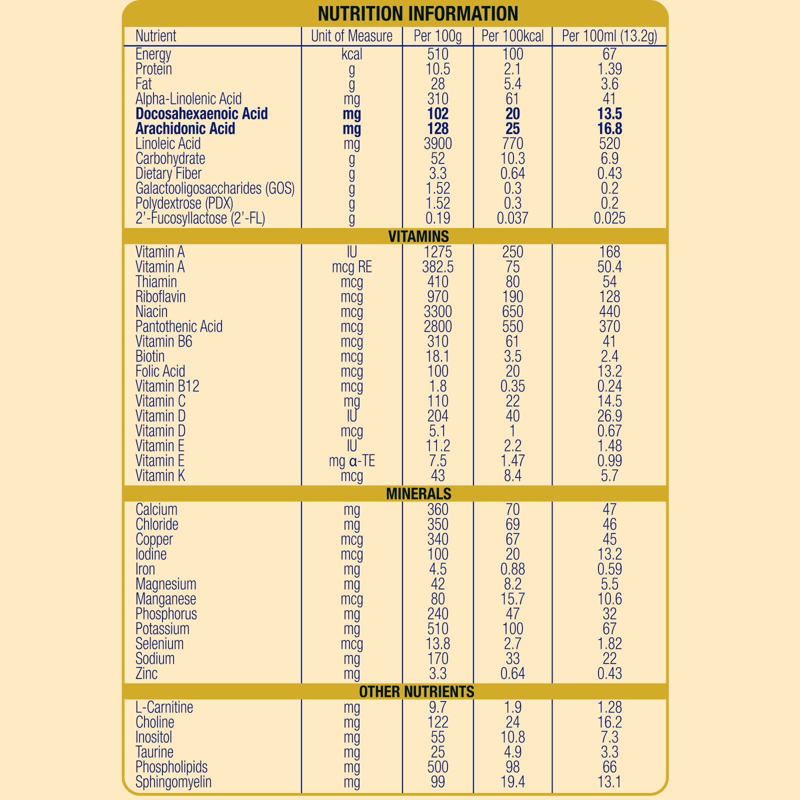 - Enfamil A+ Stage 1contains: