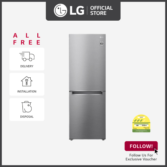 [Bulky] LG GB-B306PZ 306L 2 Doors Inverter Bottom Freezer Refrigerator in Platinum Silver + Free Delivery + Free Installation + Free Disposal