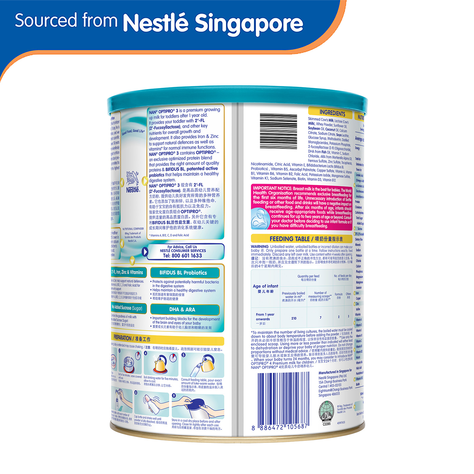 No Added Sucrose (Sugar) - Contains the goodness of milk with No Added Sucrose (Sugar).