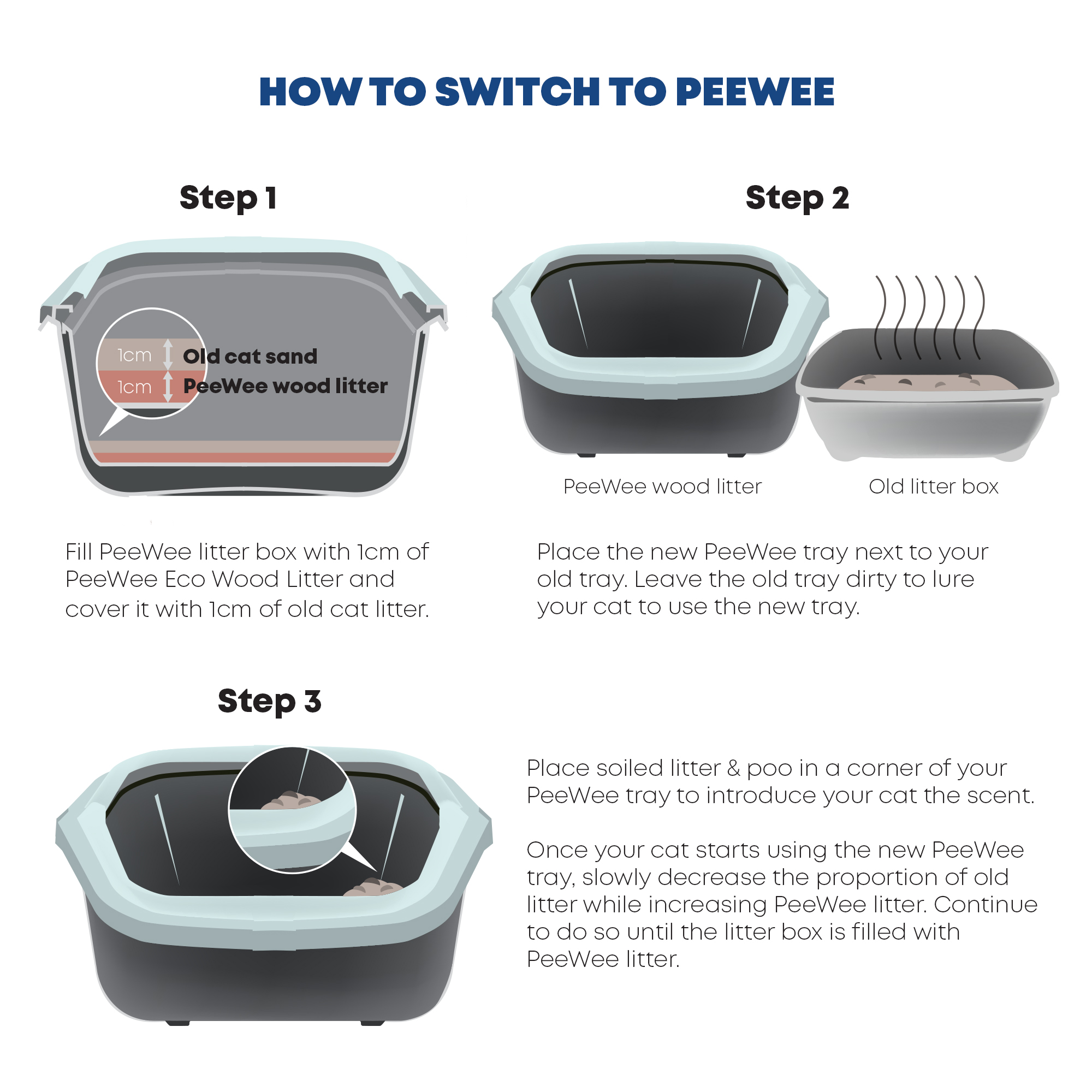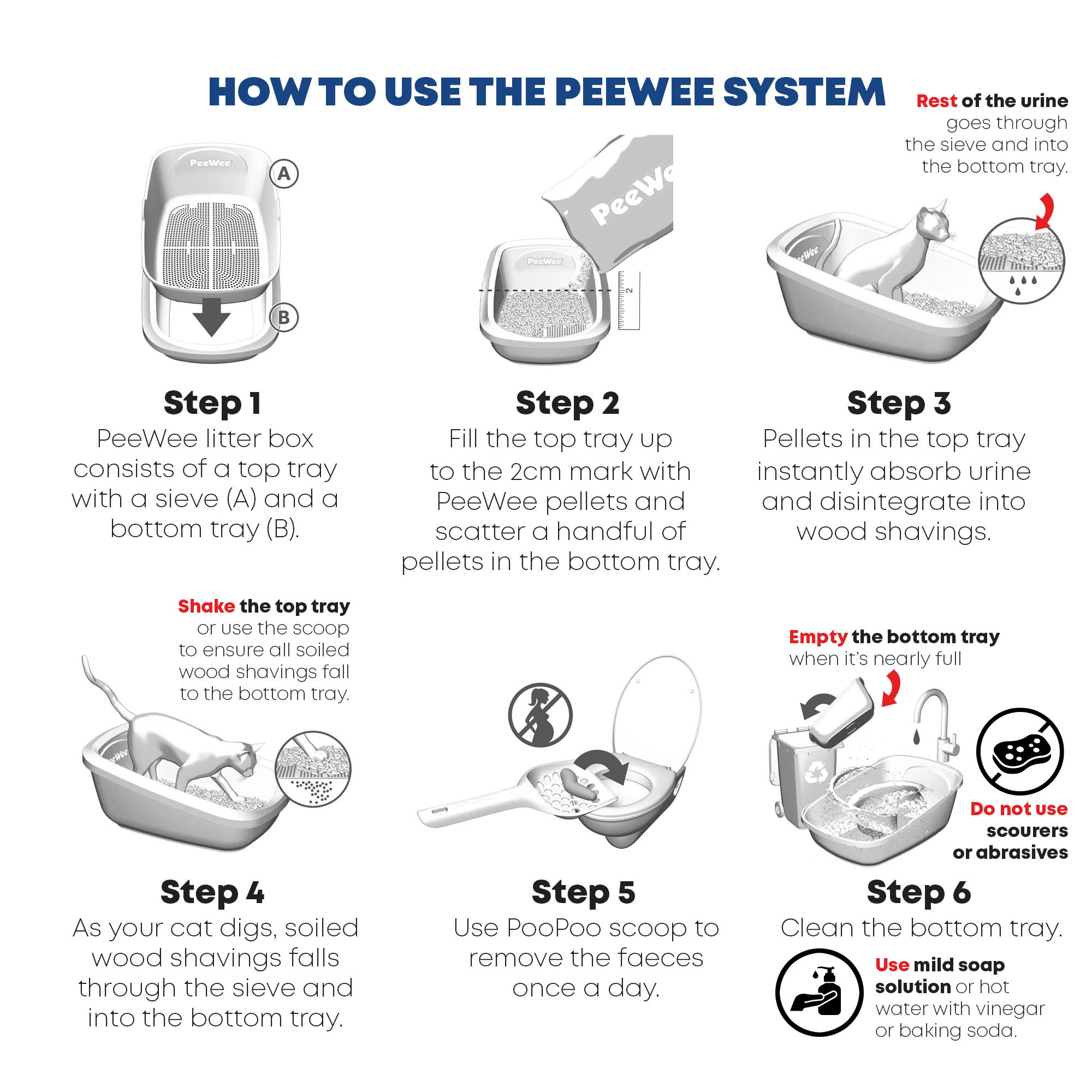 If the tray contains wood pellets exceeding the recommended 2cm mark, more wood pellets will be soiled. Besides being wasteful, the wood pellets in the top tray will not stay clean. Hence, the litter box system will not work optimally.