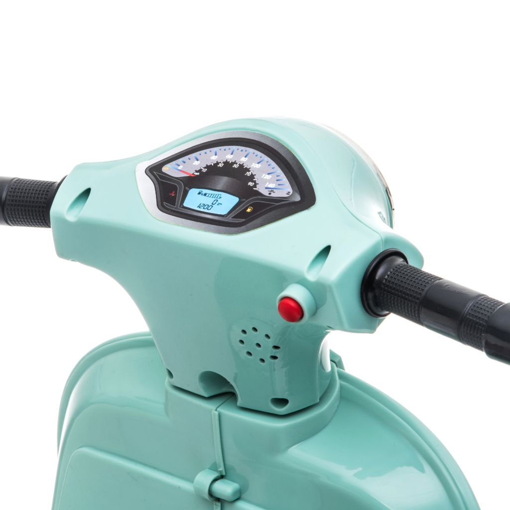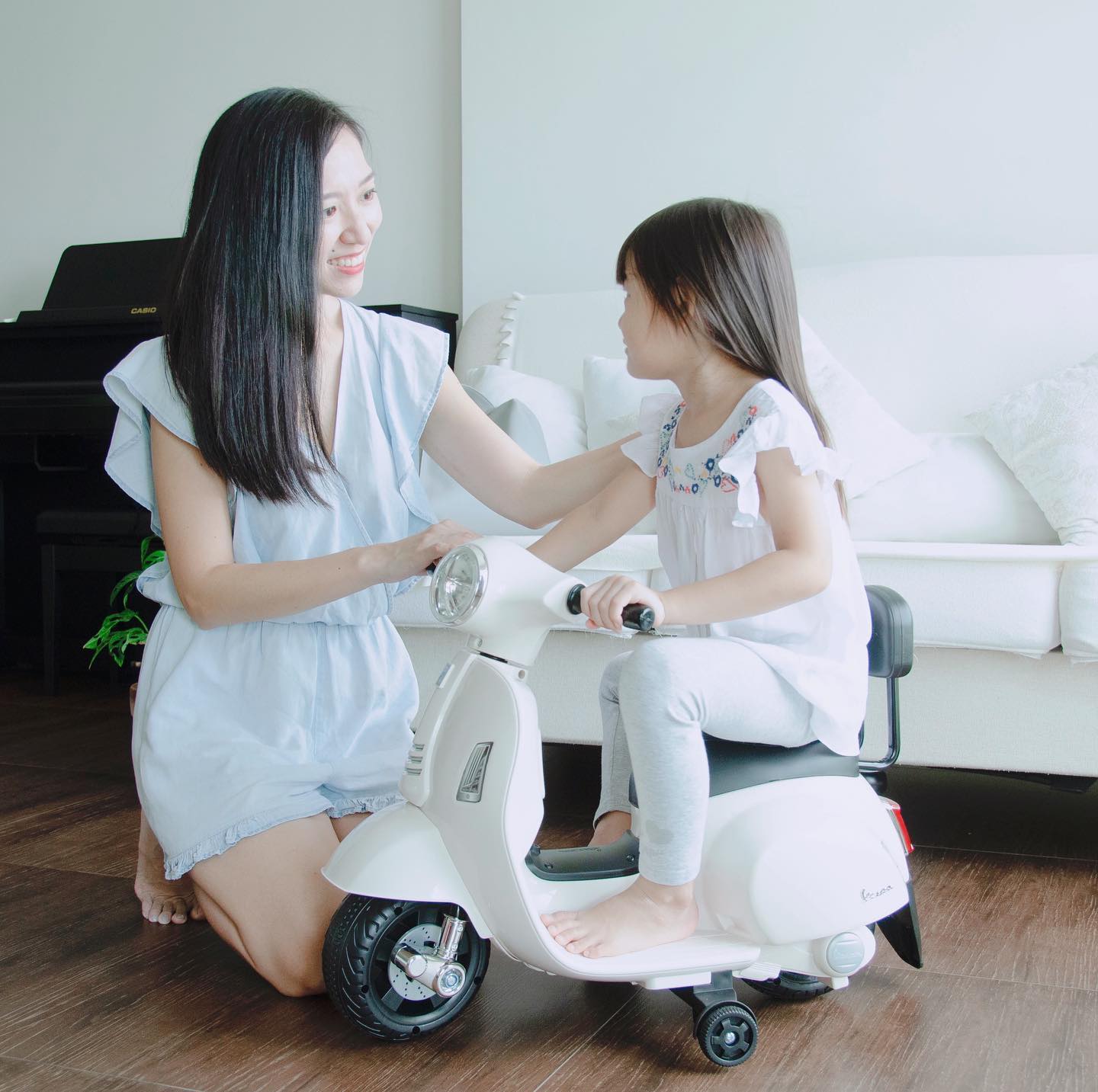Vespa Mini Electric Ride-On Scooter is an officially licensed children electric ride that takes after the Vespa GTS in the scale 1:5. While providing an exciting riding journey for your kid from 18 months old to about 3 years old, it ensures that your kid is safe with it's thoughtful features like the presence of a backrest, anti-tip safety guard and most importantly a safe speed limit.