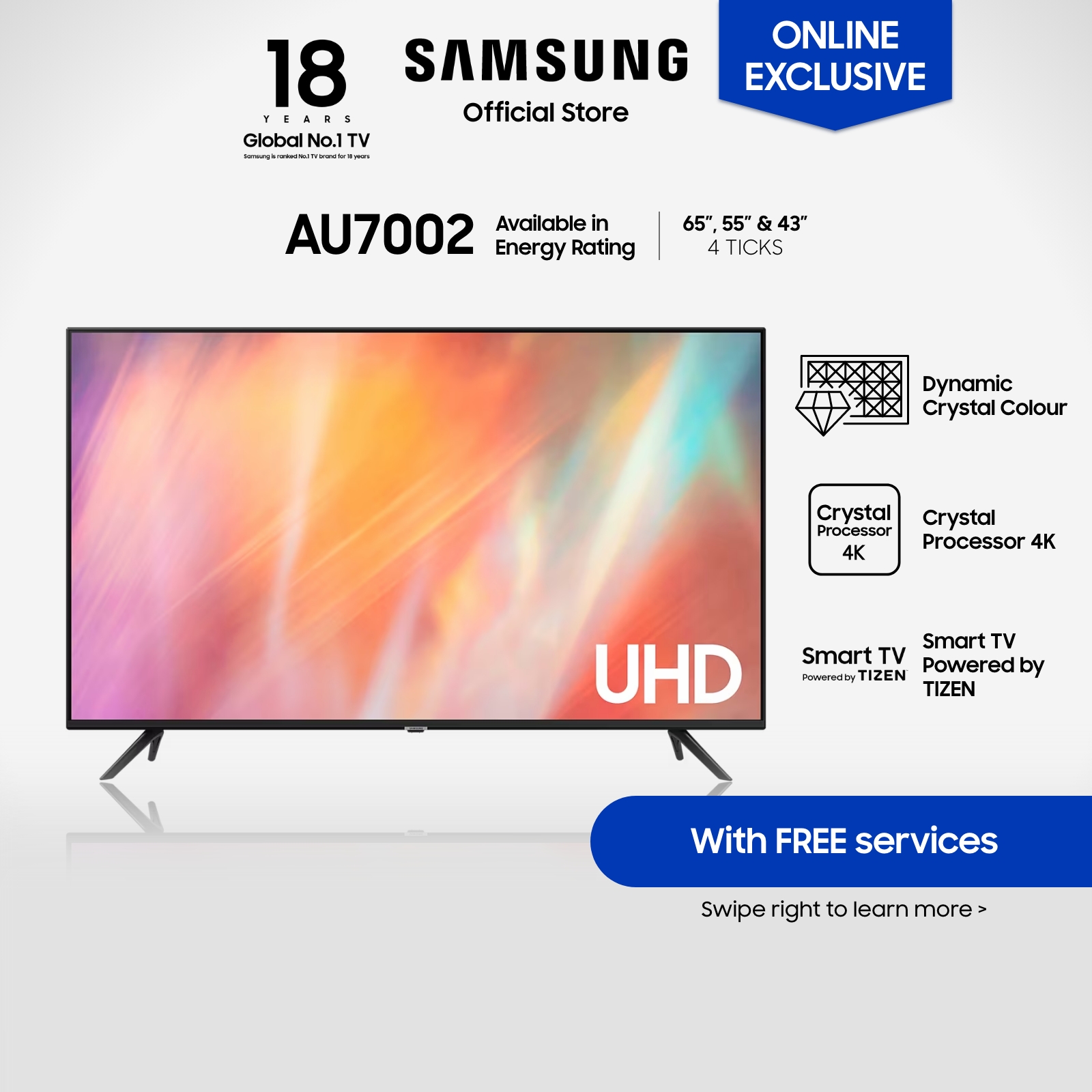 Samsung AU7002 UHD 4K Smart TV, 4 Ticks [Online Exclusive]