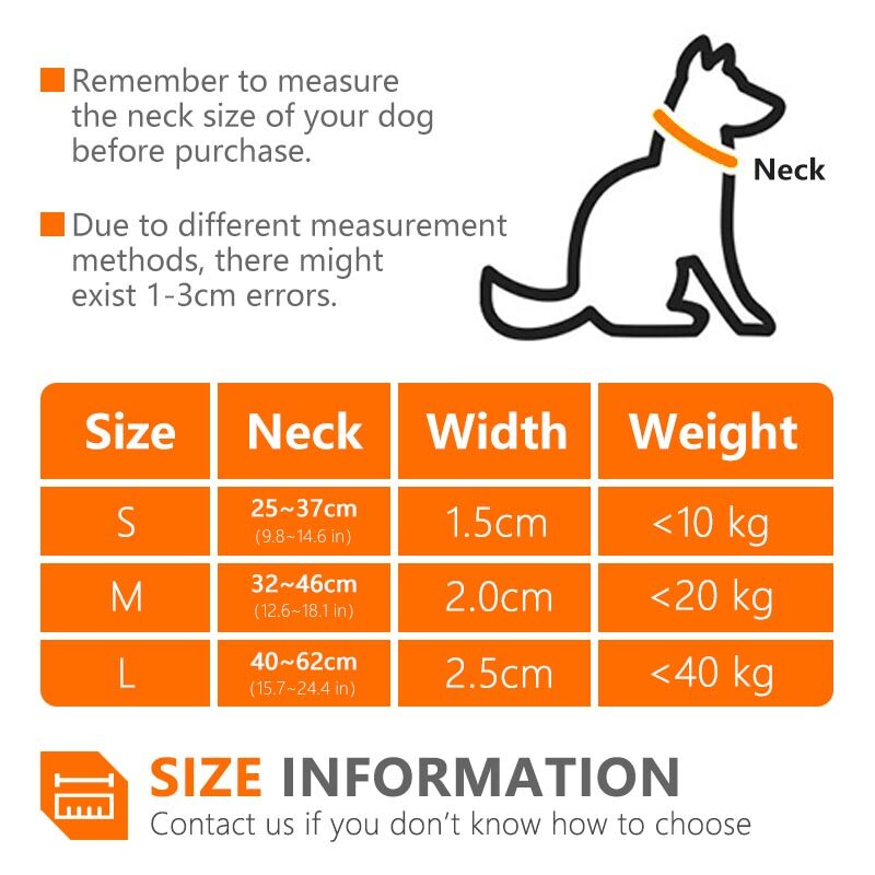 ◾Remember to measure your dogs neck size before purchase,if you have any size choosing problem,dont be hesitate to contact us,we will help you choose the proper size.