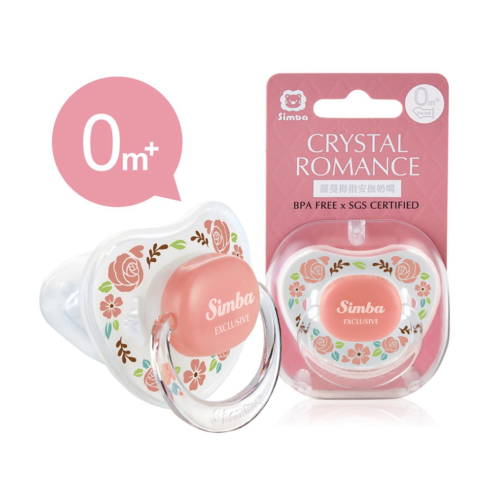 Simba Crystal Romance Pacifier Ergonomic thumb shaped pacifier that is designed for baby’s natural jaw and teeth shape. Groove design prevents saliva adhesion between lips and pacifier. Its smile curve design with round edges gives baby the ultimate comfort. Hygienic case included. BPA-free and SGS-certified material.