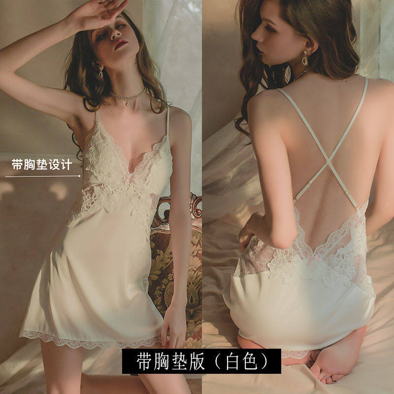 Justtoi. Sexy Lace Silk Nightdress With Chest Pad