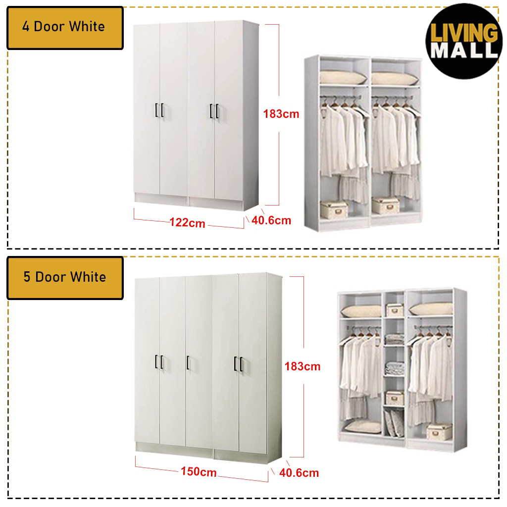 4 Door White - L 122 x D 40.6. x H 183 cm