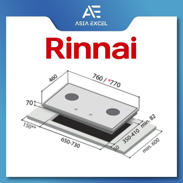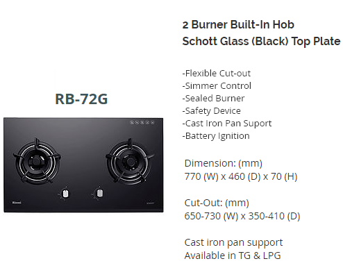 RINNAI RB-72G (RB72G) 2 BURNER HYPER FLAME BUILT-IN GLASS HOB