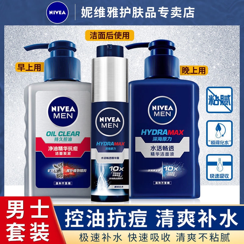 Nivea Men's Facial Cleanser Oil Control Anti-Acne Moisturizing Skin Care Products Cosmetic Set Complete Set