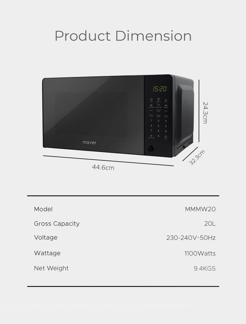 Mayer 20L Microwave Oven MMMW20 / LED Digital Screen/ 6 Preset/ 100 Minutes Timer/ Child-lock/ Push Button Door