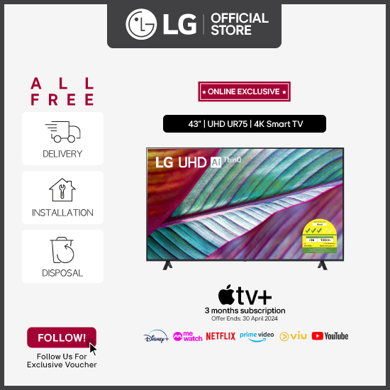 (Pre-Order) [Bulky] LG UHD UR7550 43inch 4K Smart TV (Online Exclusive) with LG Magic Remote + Free Table Top Setup + Free Delivery + Free Disposal