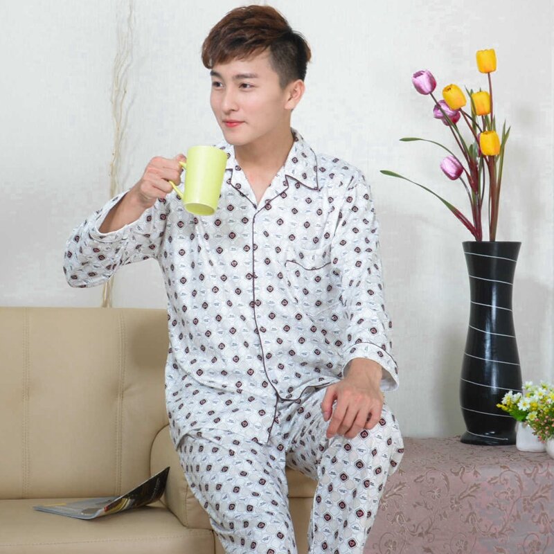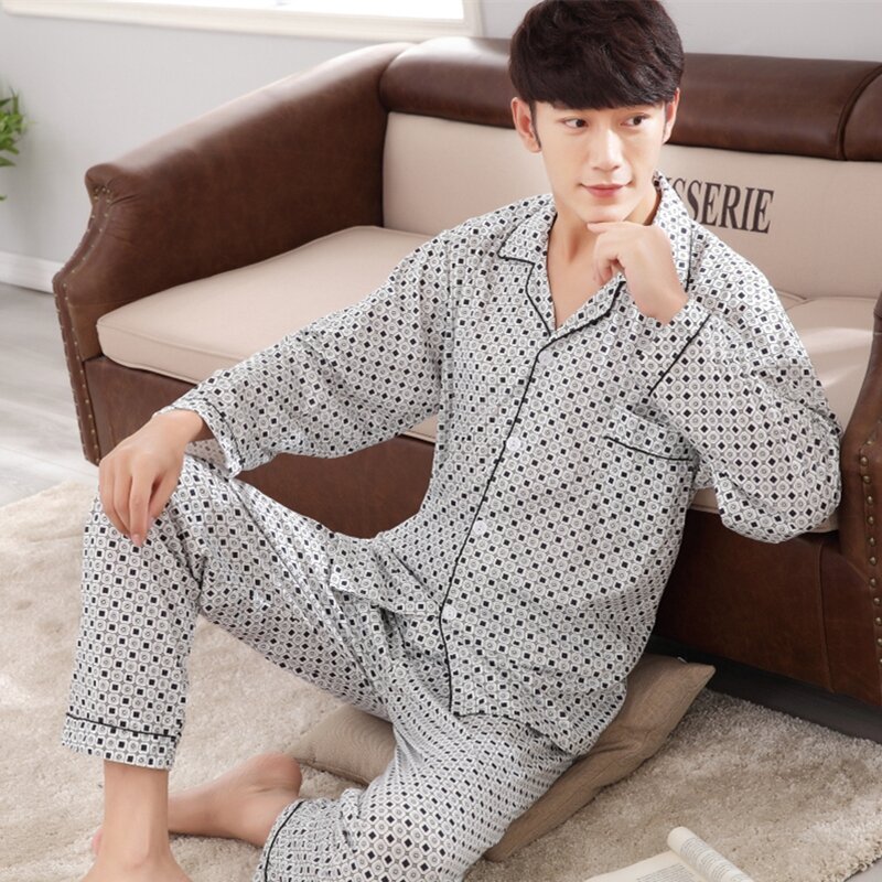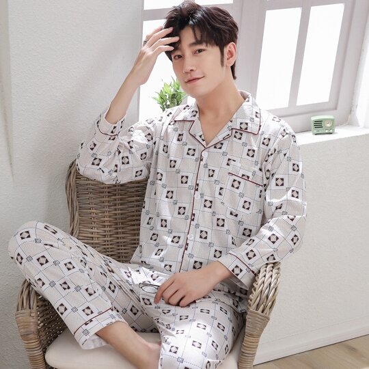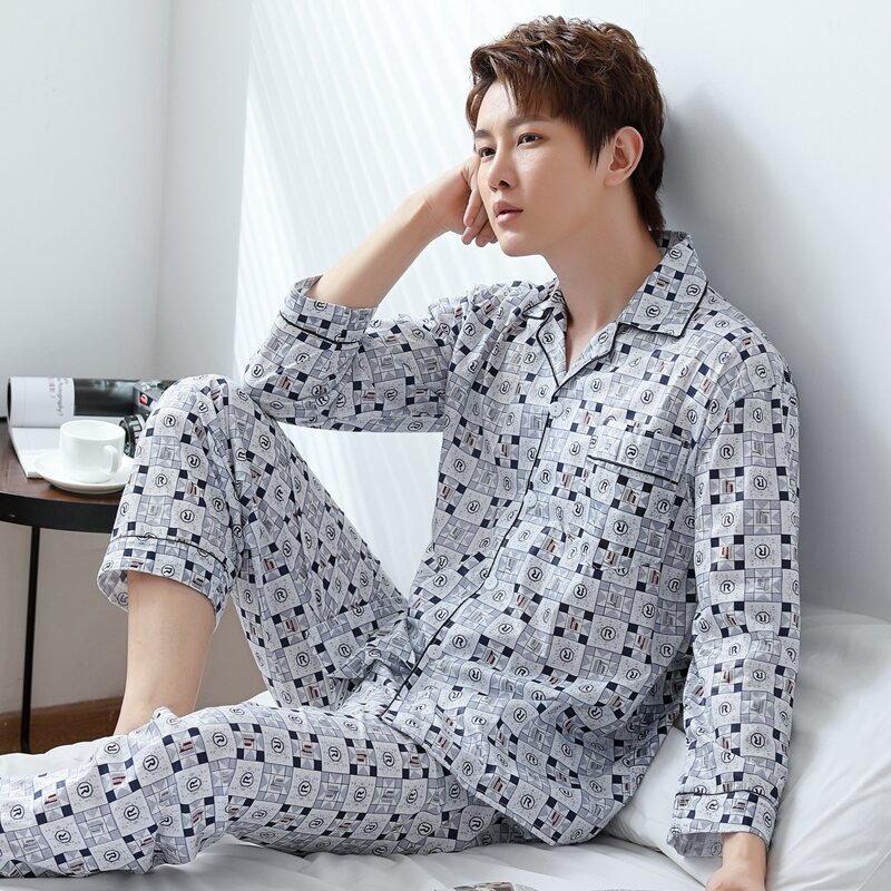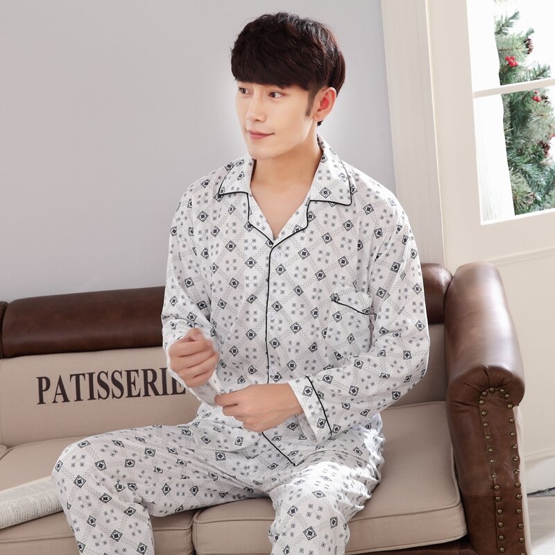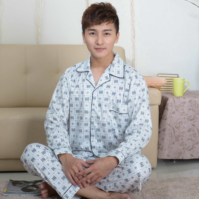Pajamas Men's Spring and Autumn Middle-Aged and Elderly Cotton Long-Sleeved Men's plus Size Middle-Aged Dad Suit Home Wear Thin Summer
