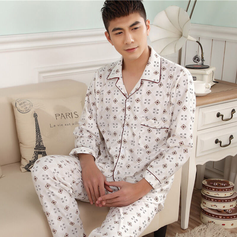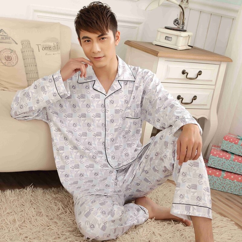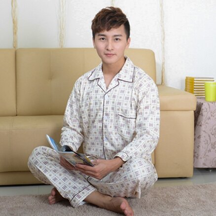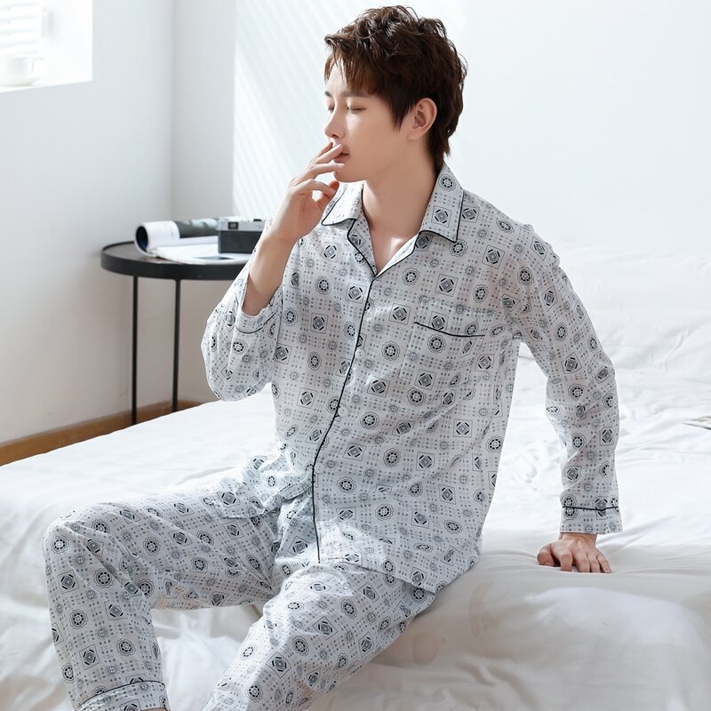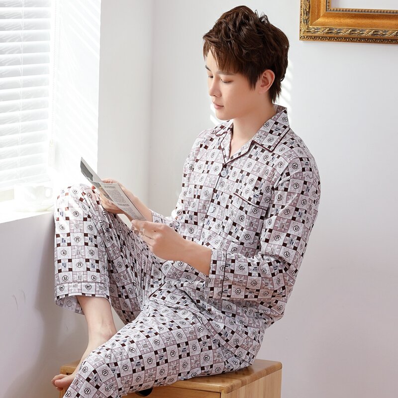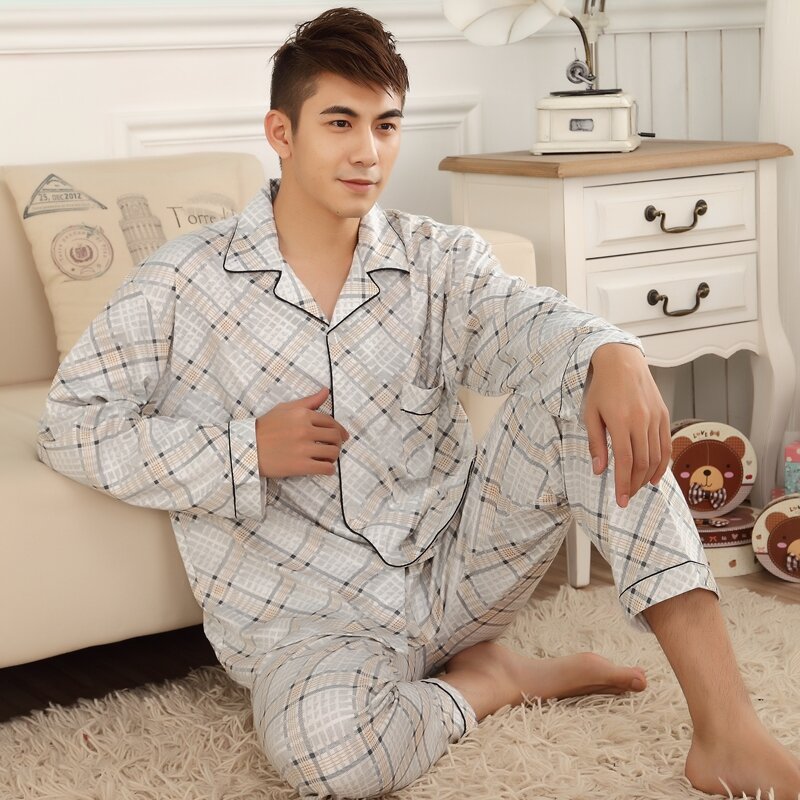 Pajamas Men's Spring and Autumn Middle-Aged and Elderly Cotton Long-Sleeved Men's plus Size Middle-Aged Dad Suit Home Wear Thin Summer