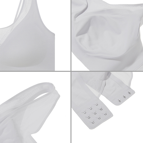 Seamless vest-style bra to free the bustLightweight cups, tank top, wireless, netted edgesOne-piece woven lace with romantic details and reduced marks3cm shoulder straps to reduce shoulder pressure