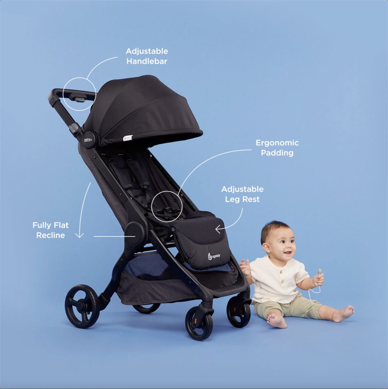 Mompush Nova Baby Stroller, Spacious Seat & Lie-Flat Mode, Toddler Stroller with Large UPF 50+ Canopy, Compact Folding with One Hand, Infant Stroller for Birth to 50 LB