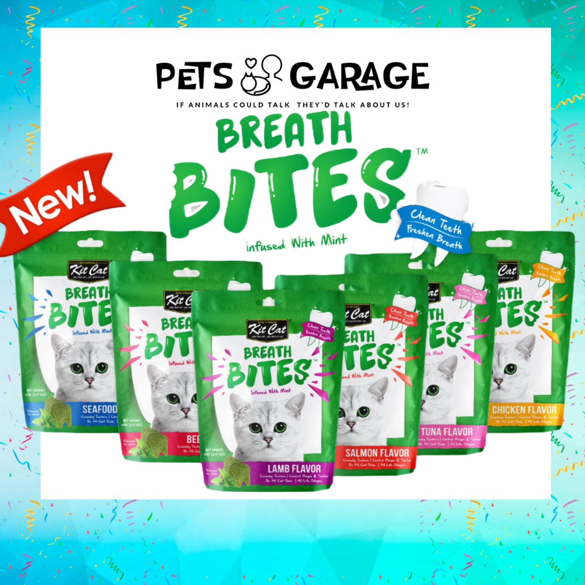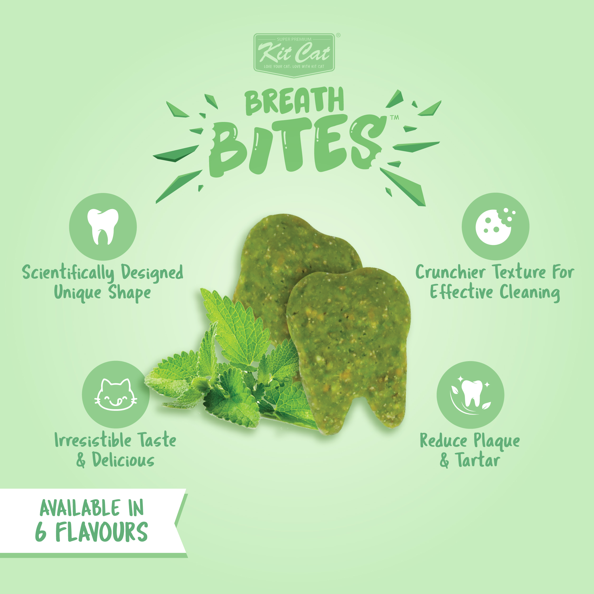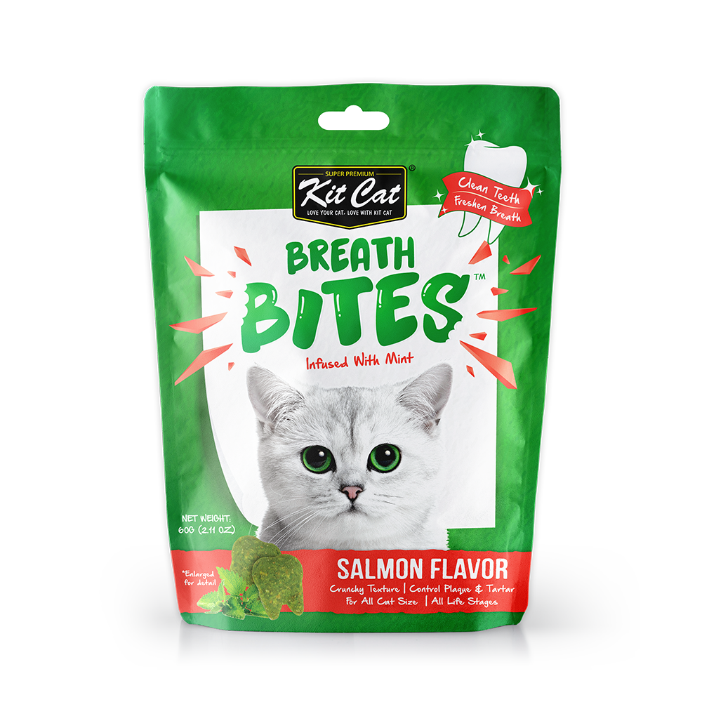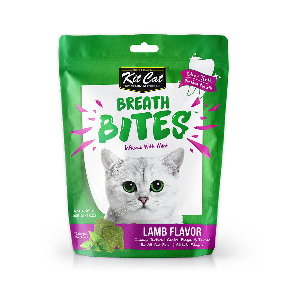 Cleaning your cat’s teeth has never been easier or more delicious with Kit Cat Breath Bites. Bursting with the tasty flavors your cat will love, these crunchy treats are specially designed to help keep your cat’s teeth clean by reducing plaque and tartar when fed daily.