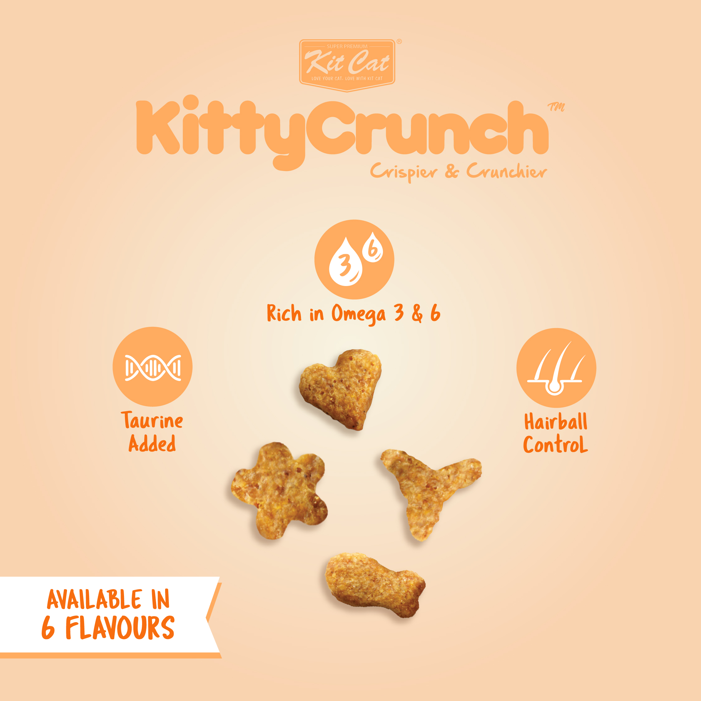Kit Cat Kitty Crunch are created by nutritionists who are cat lovers and are made with goodness of carefully selected ingredients.
