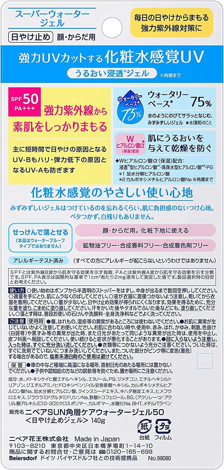 ・Product name: Nivea Sun Protect Water Gel SPF50/PA+++ Pump 140g