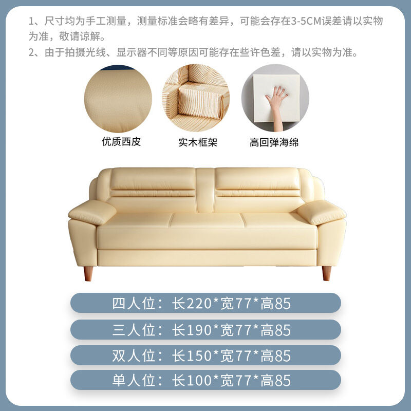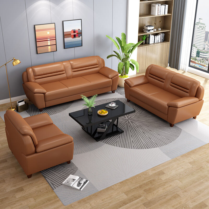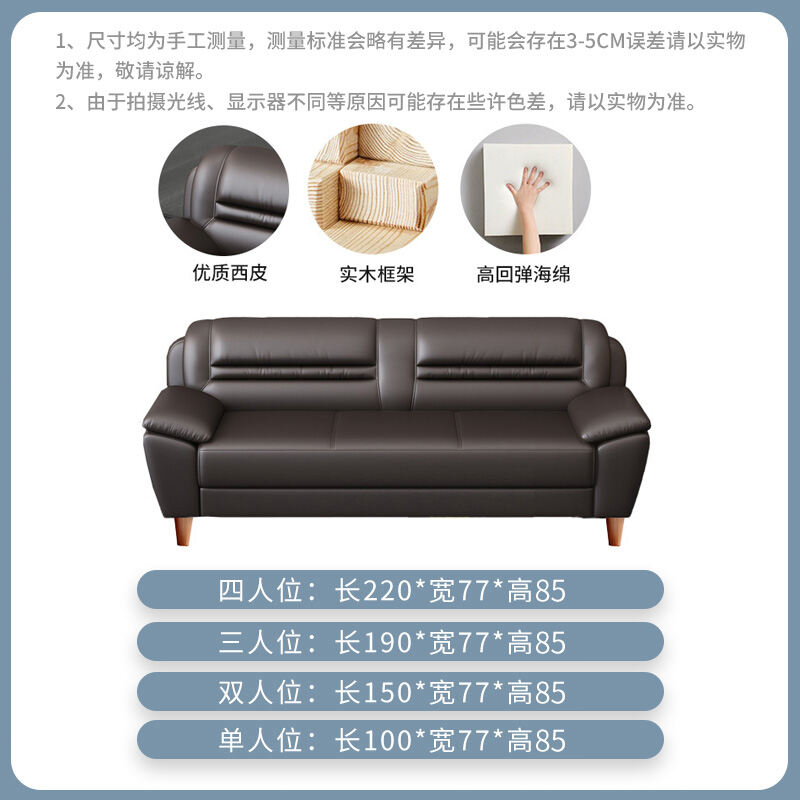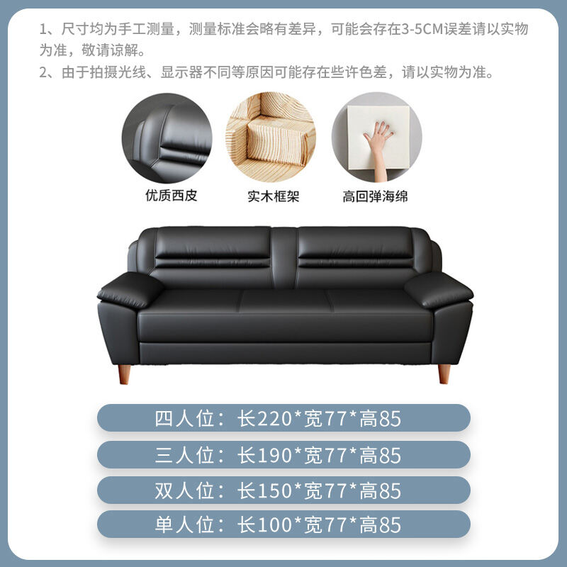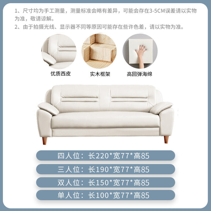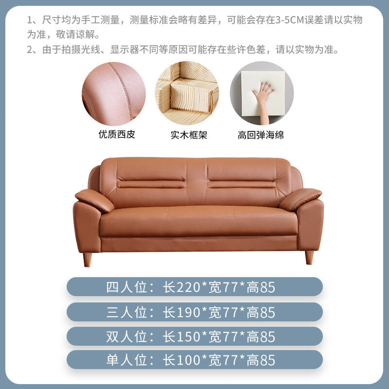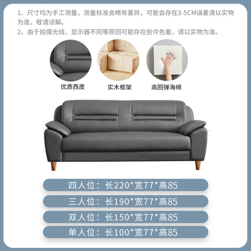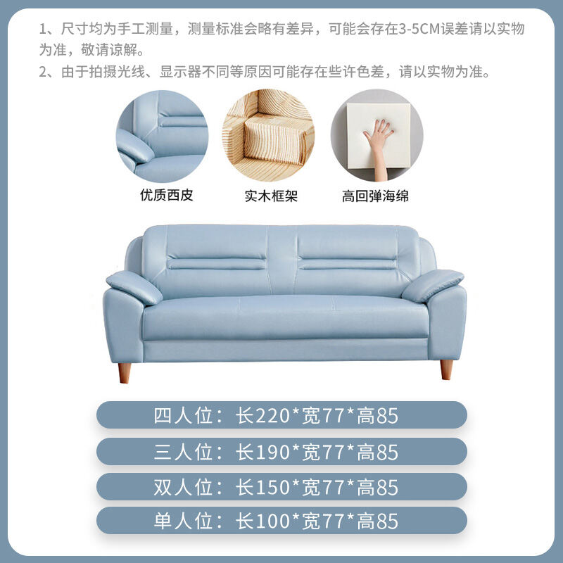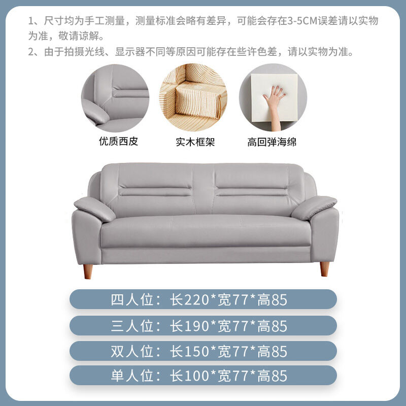 Leather Sofa Small Apartment Internet Celebrity Three-Seat Living Room Combination Modern Minimalist Office Double Leather Small Sofa