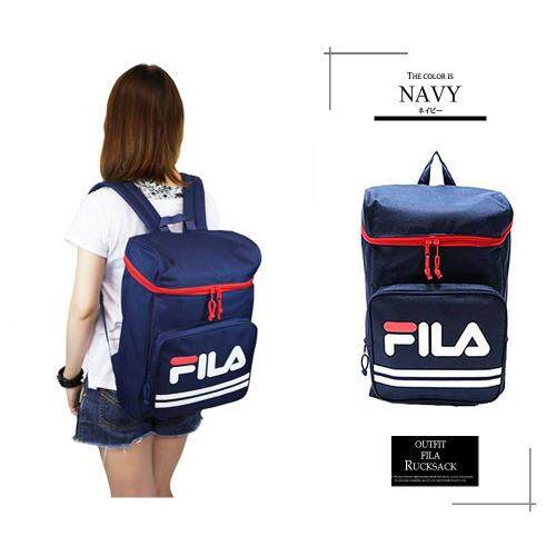 [Fila] Backpack Large Capacity Square Casual a4 Size Schoolbag Commuter Travel Bag Brand Lightweight FM2007 Navy
