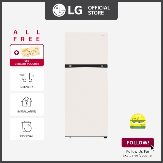 [Bulky] LG GT-B3952BN 395L Top Freezer in Objet Collection (Nature Beige) + Free Grocery Voucher $50 + Free Delivery + Free Installation + Free Disposal