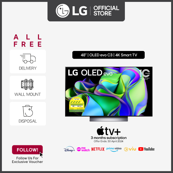 [Bulky] LG OLED48C3PSA 48'' OLED 4K C3 Smart TV + Free Wall Mount Installation worth up to $200 + Free Delivery + Free Disposal