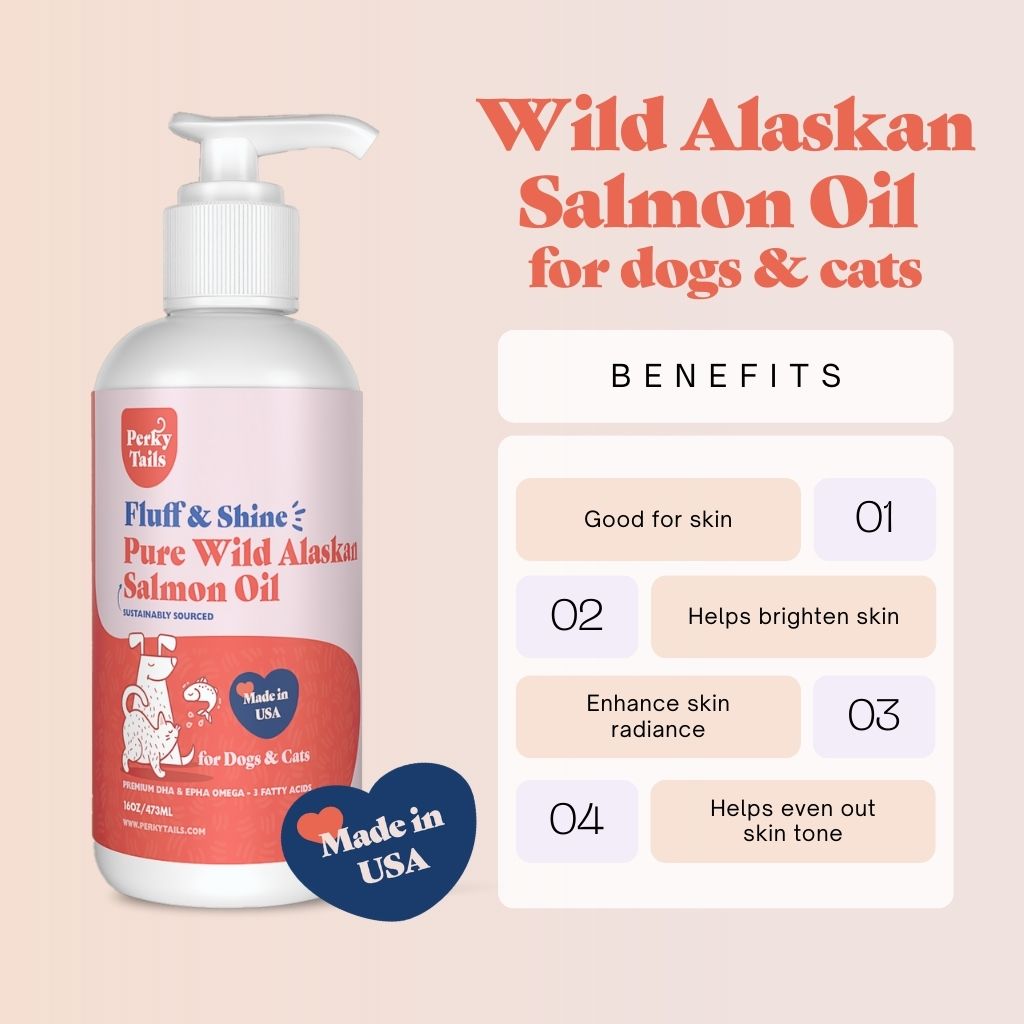 For Healthy Skin And Coat For Cats And Dogs - Perkytails Wild Alaskan Salmon Oil For Dogs Is All Natural And Contains Essential Omega 3 Fatty Acids To Help Our Pets Look and Feel Good From Within
