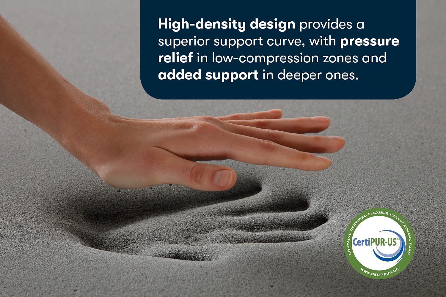 - PRESSURE RELIEF: High‐density design provides a superior support curve, with pressure relief in low compression zones and added support in deeper ones