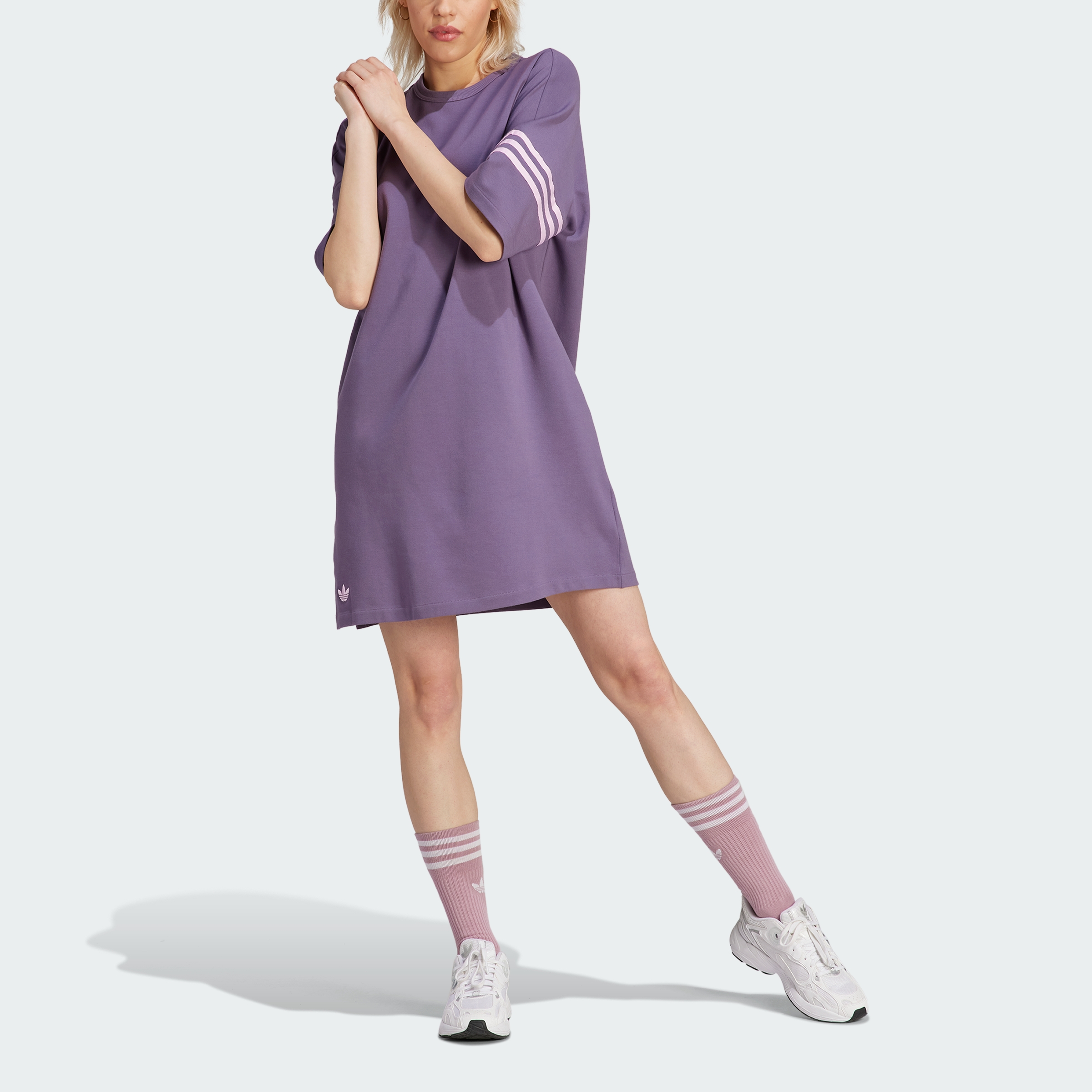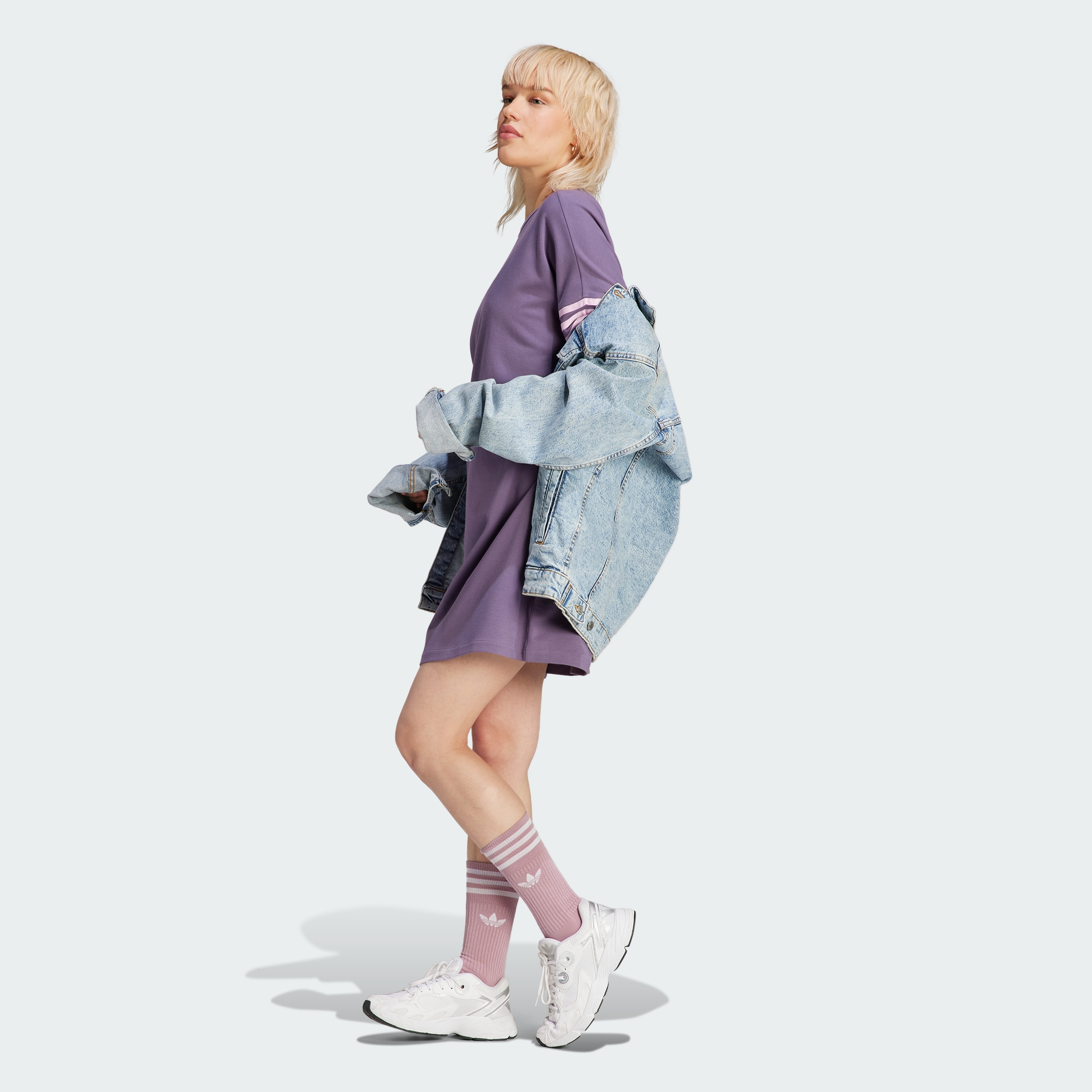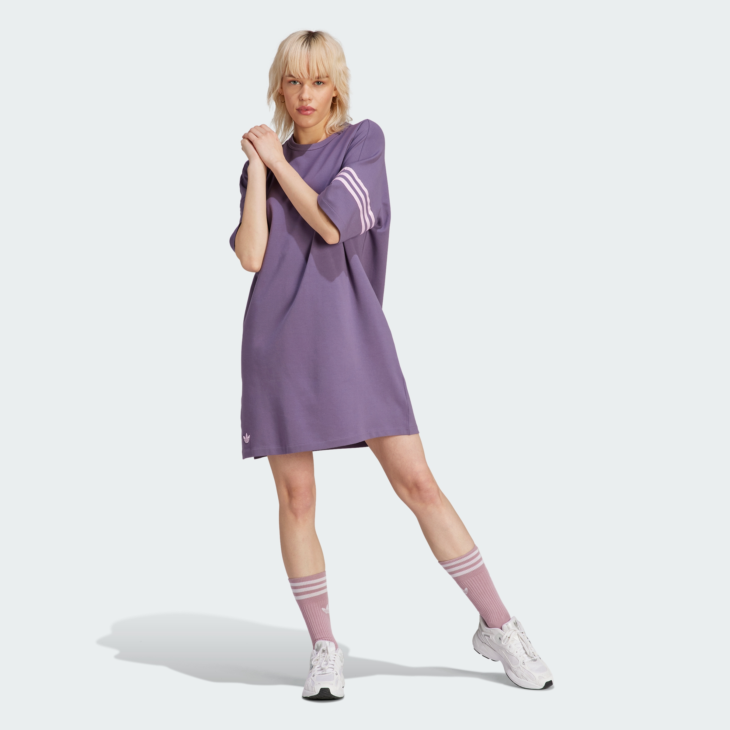 Elevating your look is easy with this adidas Adicolor tee dress. Made in a soft cotton blend, it boasts a retro look powered by serrated 3-Stripes that wrap around one sleeve. The loose fit adds relaxed comfort and makes it easy to layer. A minimum of 70% of this product is a blend of recycled and renewable materials.