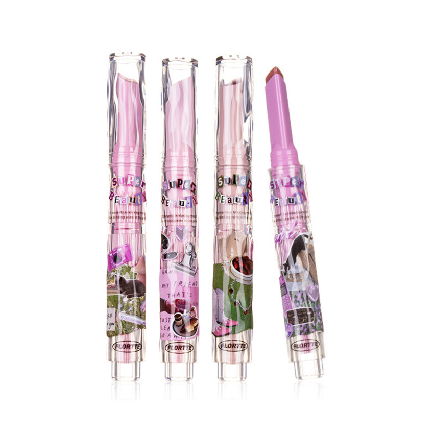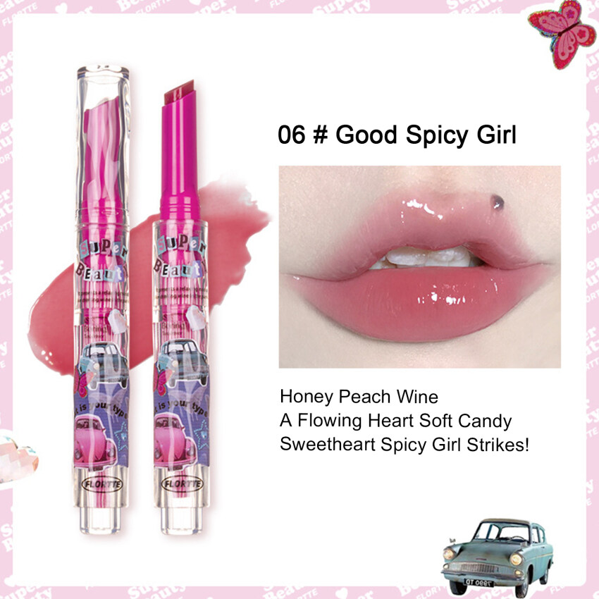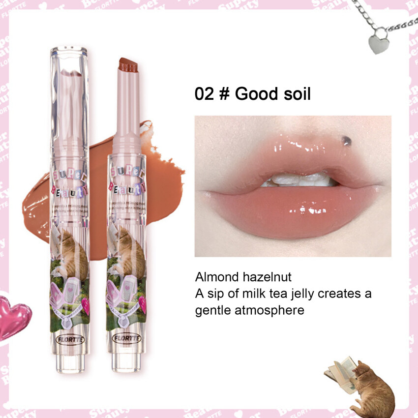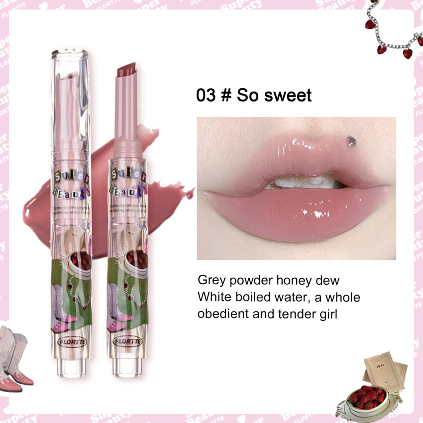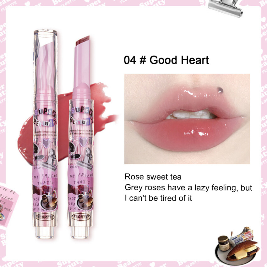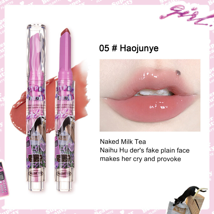 FLORTTE New Love Lipstick Pen Mirror Watergloss waterproof Lip Glaze Moisturizing Lipgloss Beauty Makeup Stick Jelly Lips