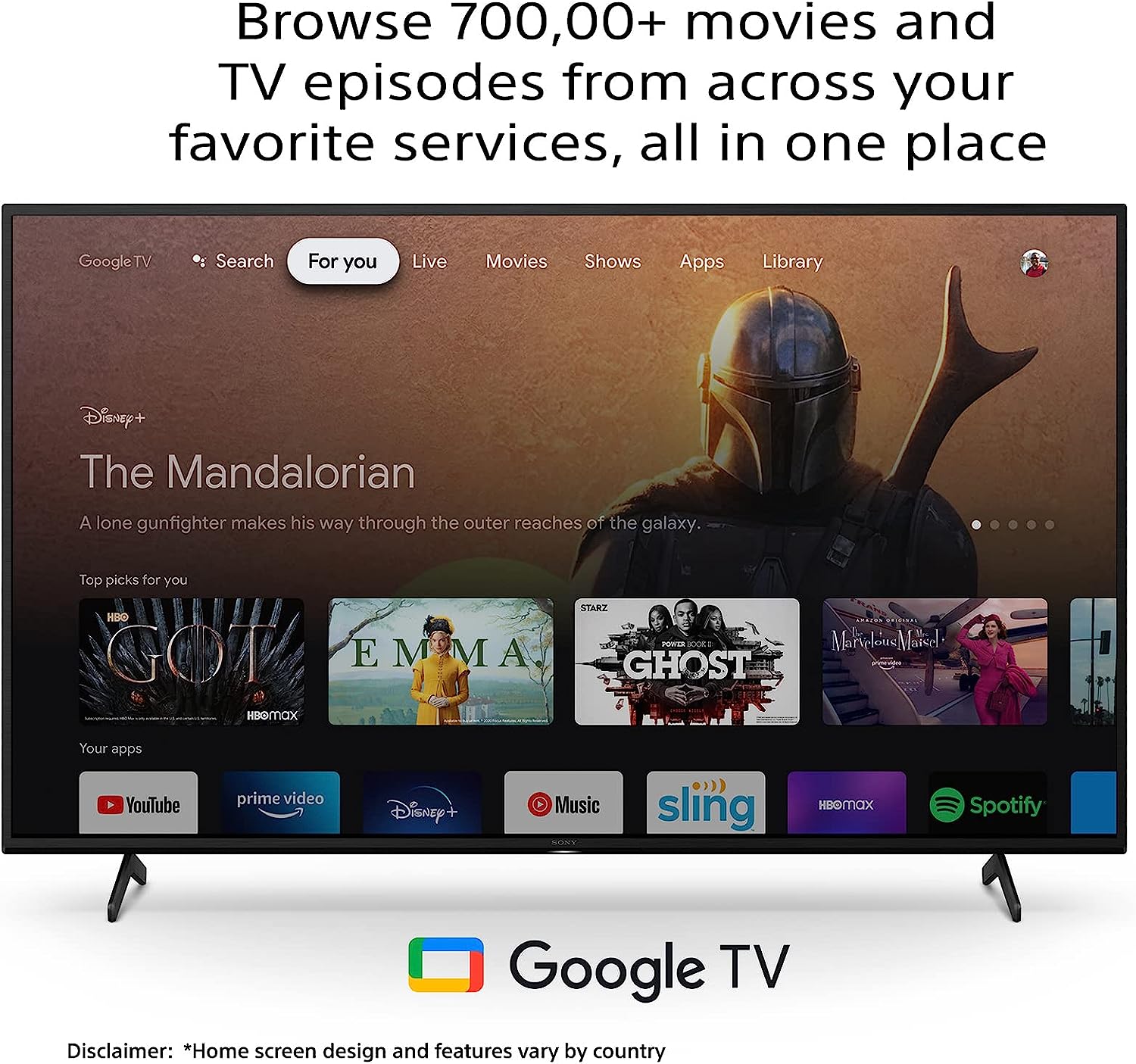 - Smart TV Features: Google TV Watchlist Voice Search Google Play Chromecast Netflix Prime Video Additional Features: Apple Airplay Apple Homekit Alexa