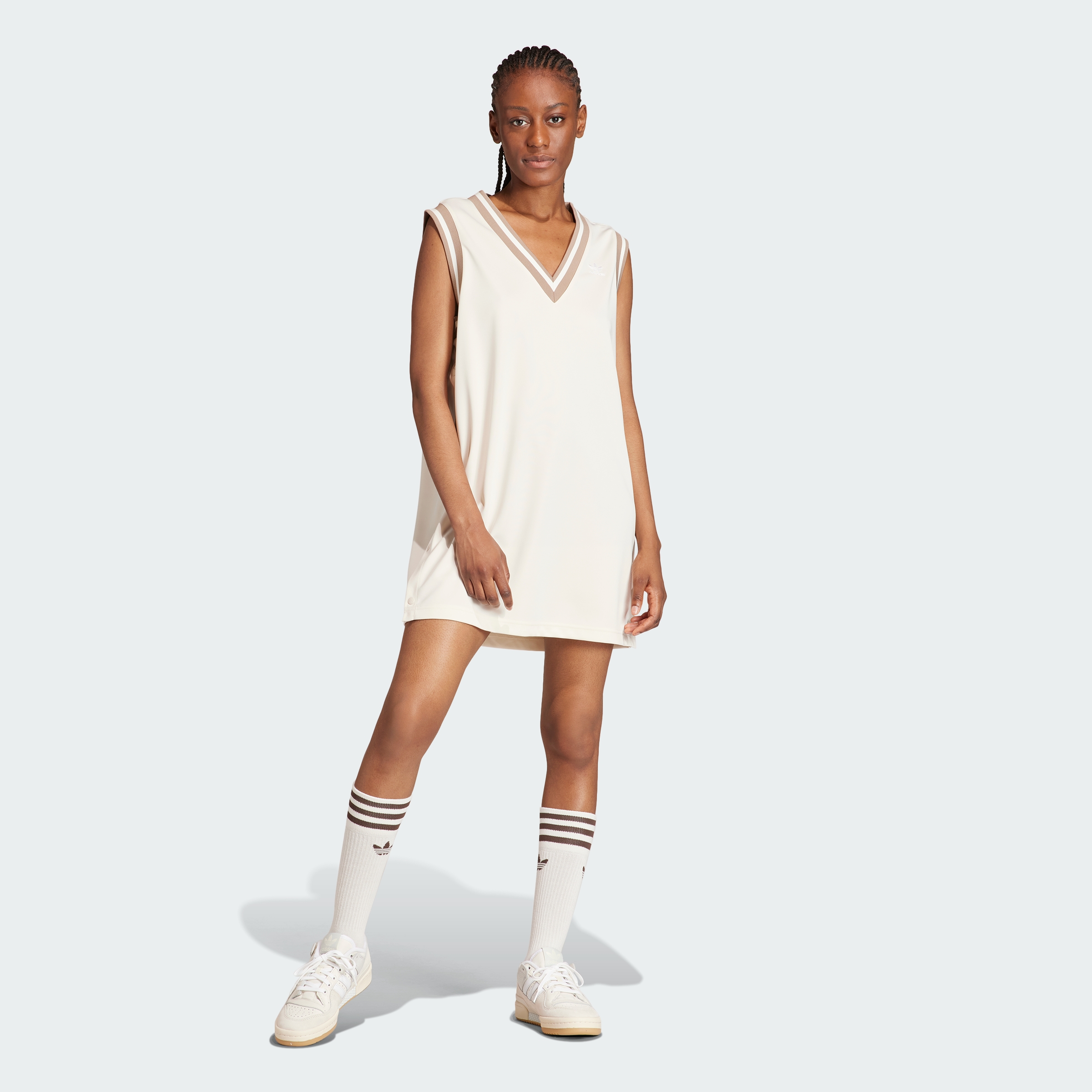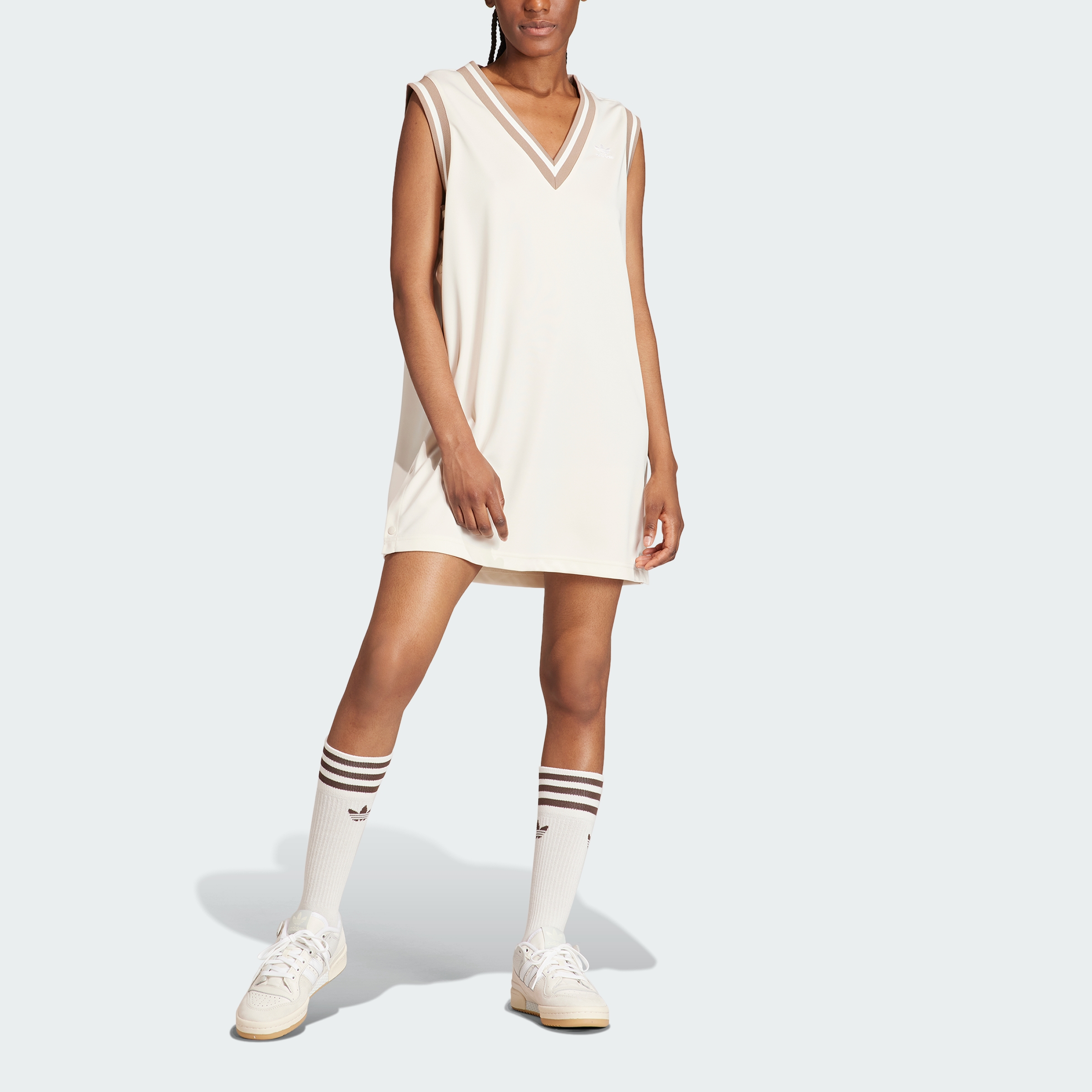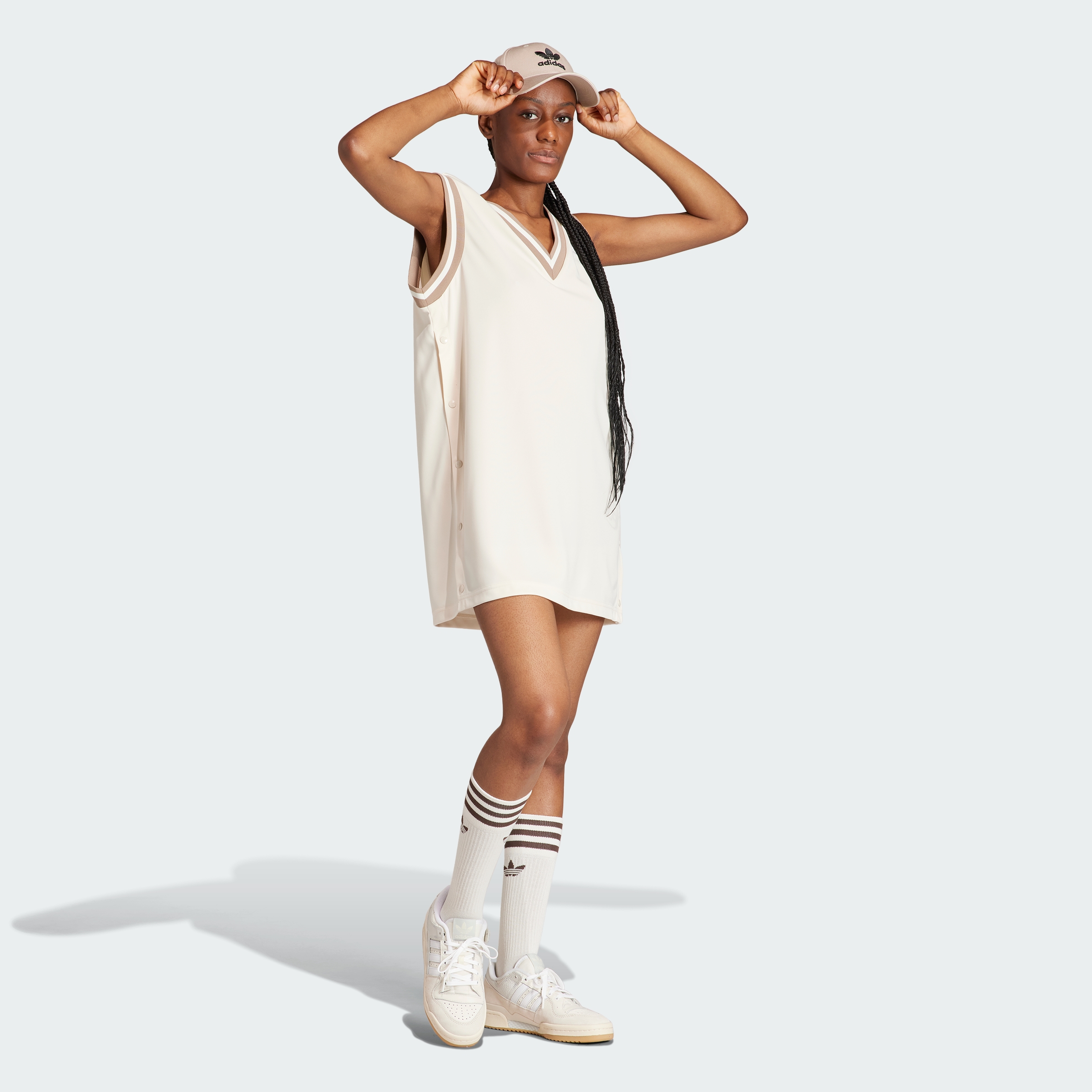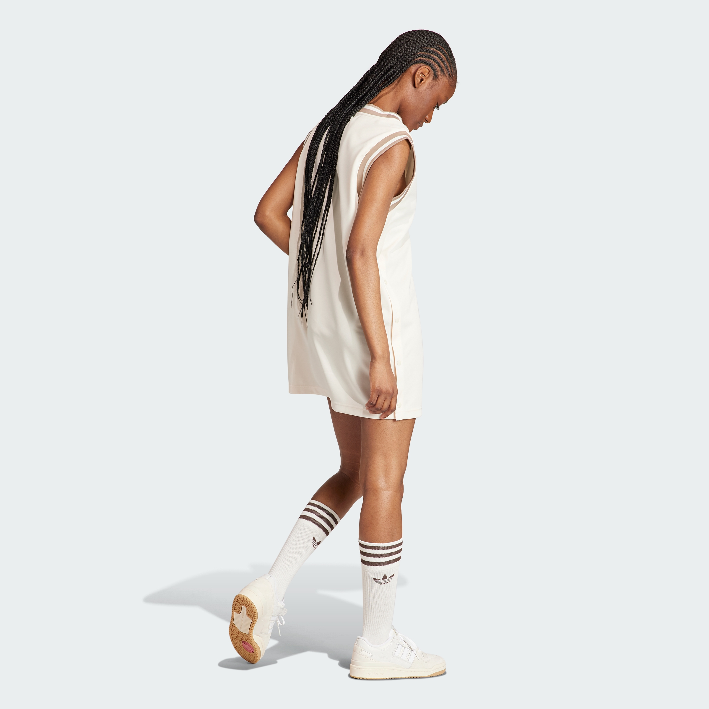 You know the pants. Now meet the dress. Based on the iconic Adibreak style that took athletes from warmups to game time with ease, this adidas dress features signature snap buttons on the sides. Lace on some trainers and call it a day, or dress it up with your favourite jacket. It's a versatile staple you can style how you please. A minimum of 70% of this product is a blend of recycled and renewable materials.