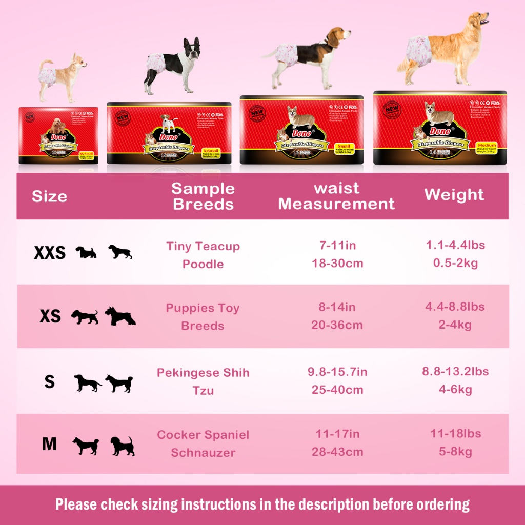 ? FREE WET WIPES ? Dono Pet Disposable and Economic Puppy Dog Diapers Male & Female - Absorbent Leak-Proof Belly Wraps