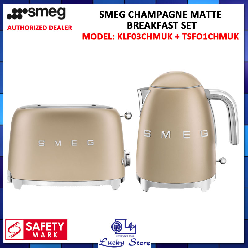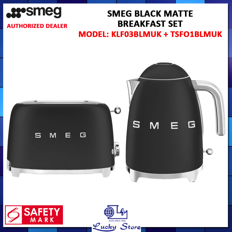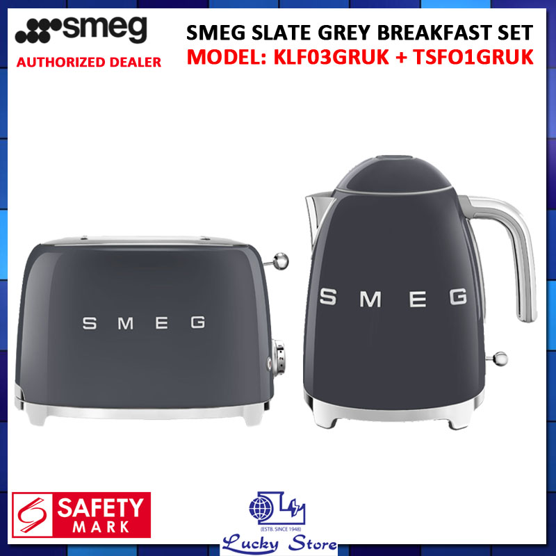 SMEG RETRO STYLE KETTLE 1.7L KLF03 + 2 SLICE TOASTER TSF01 BREAKFAST SET, 1 YEAR WARRANTY- SLATE GREY, BLACK MATTE, CHAMPAGNE MATTE