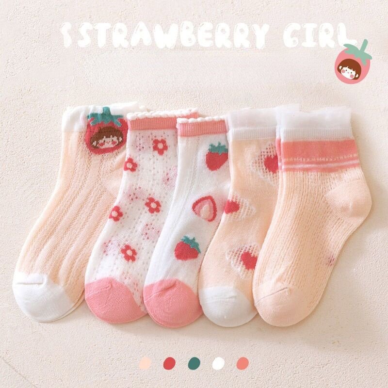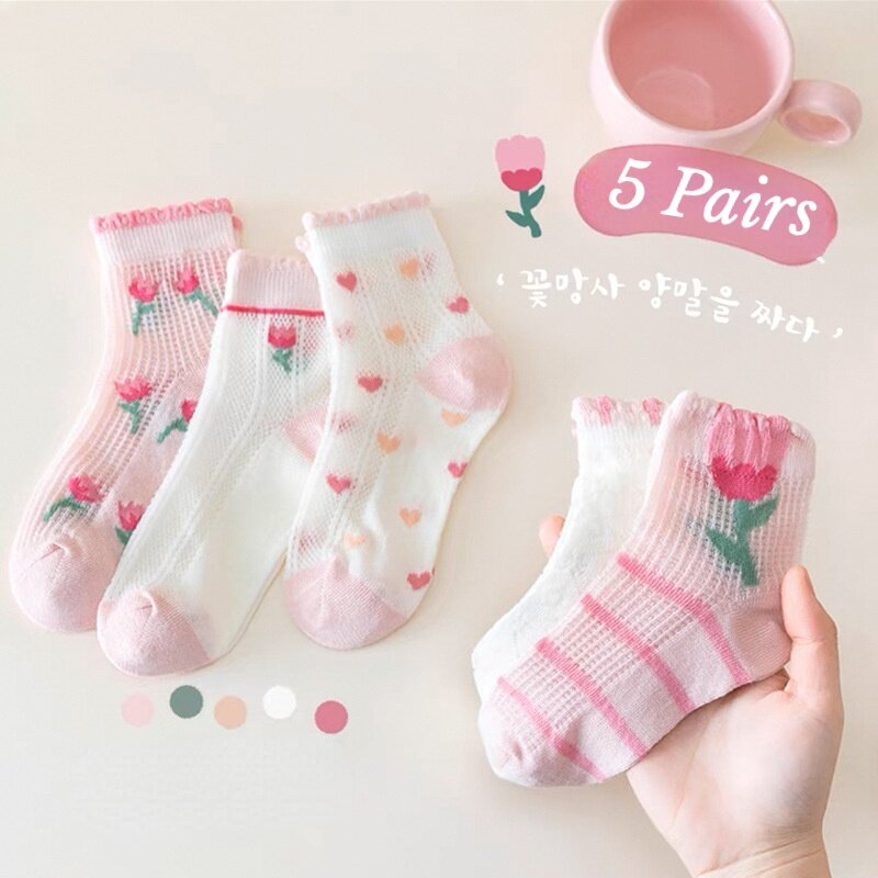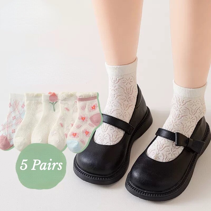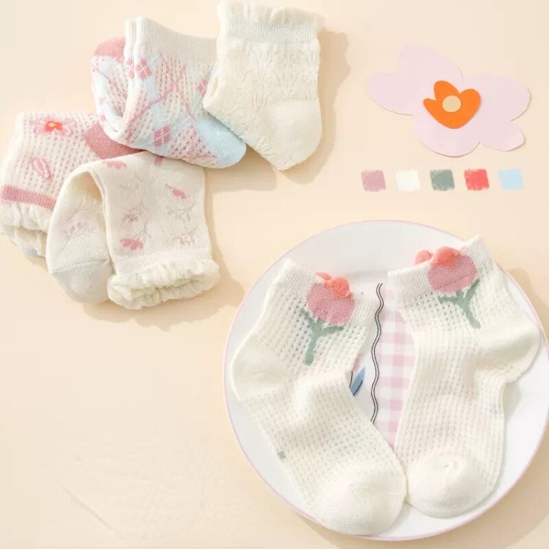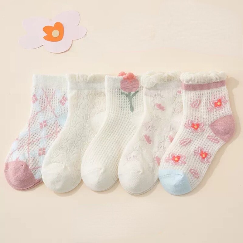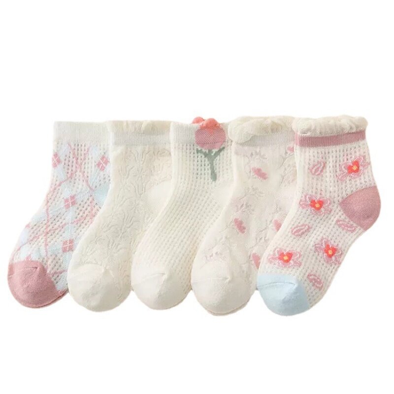 5 Pairs Children's Socks Girls Flower Thin Mesh Socks Baby Boys Cartoon Socks Summer Baby Socks 1-13 Years