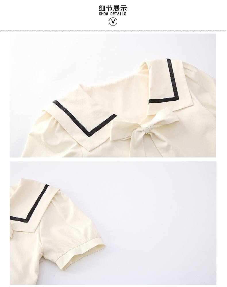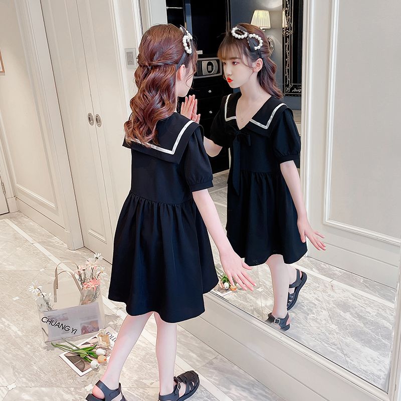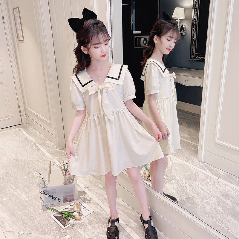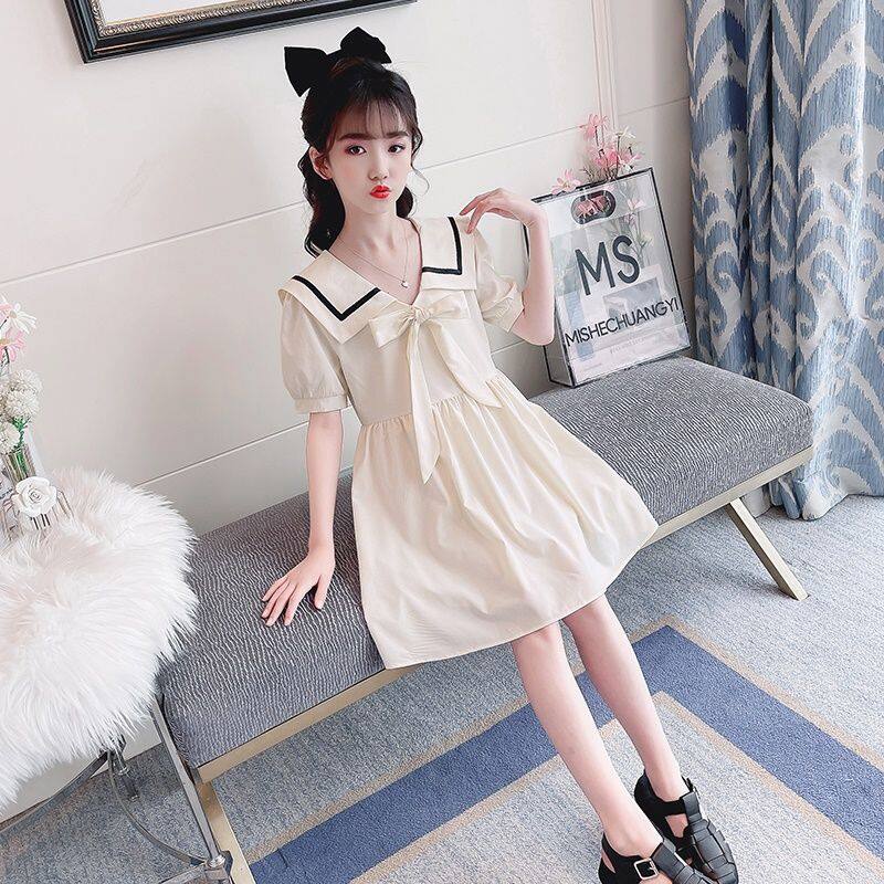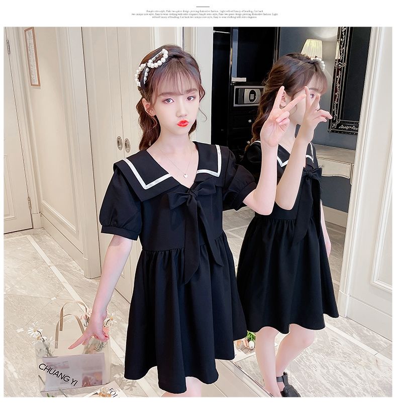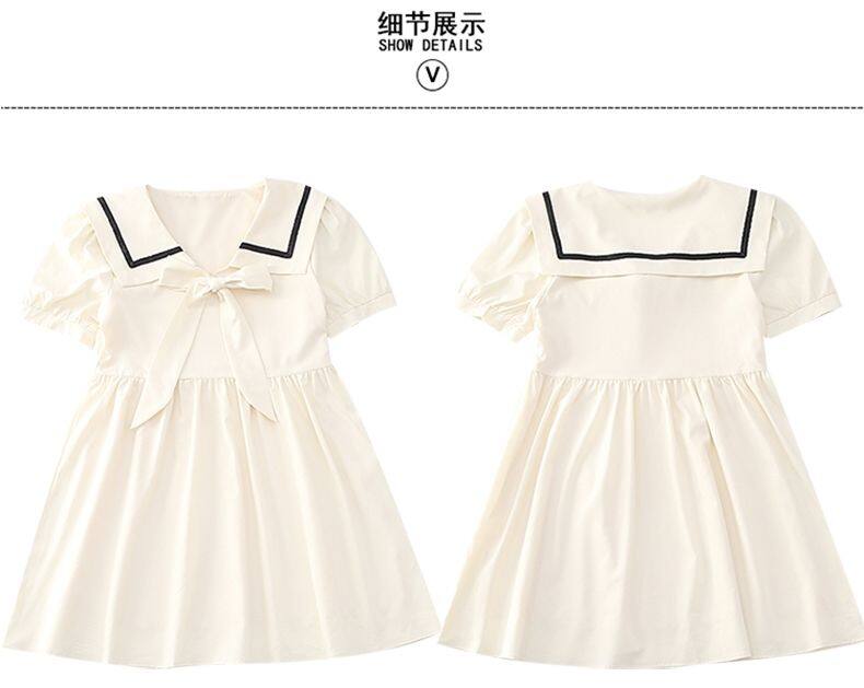 Fabric/material: Cotton/cotton Component content :71% (inclusive) -- 80% (inclusive) Pattern: Solid color Number of pieces: Single Sleeve length: Short sleeves Collar type: Navy collar Dress type: Princess dress Length: mid-length skirt Applicable age :3 years (inclusive) -- 6 years (exclusive),8 years (inclusive) -- 14 years (exclusive),6 years (inclusive) -- 8 years (exclusive) Style: College