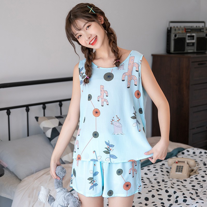 Women's pajamas two-piece sleepwear sleeveless cotton size:M-2XL Pyjamas Nightwear baju tidur