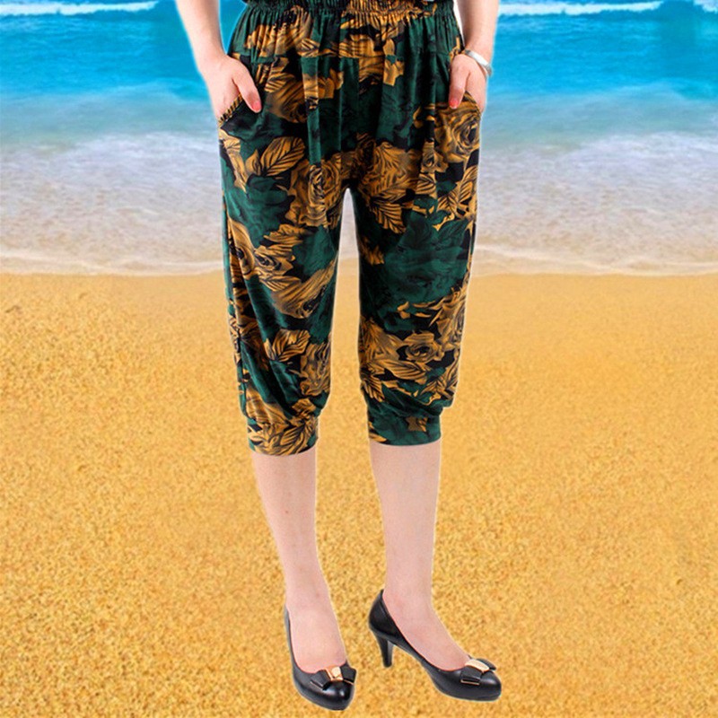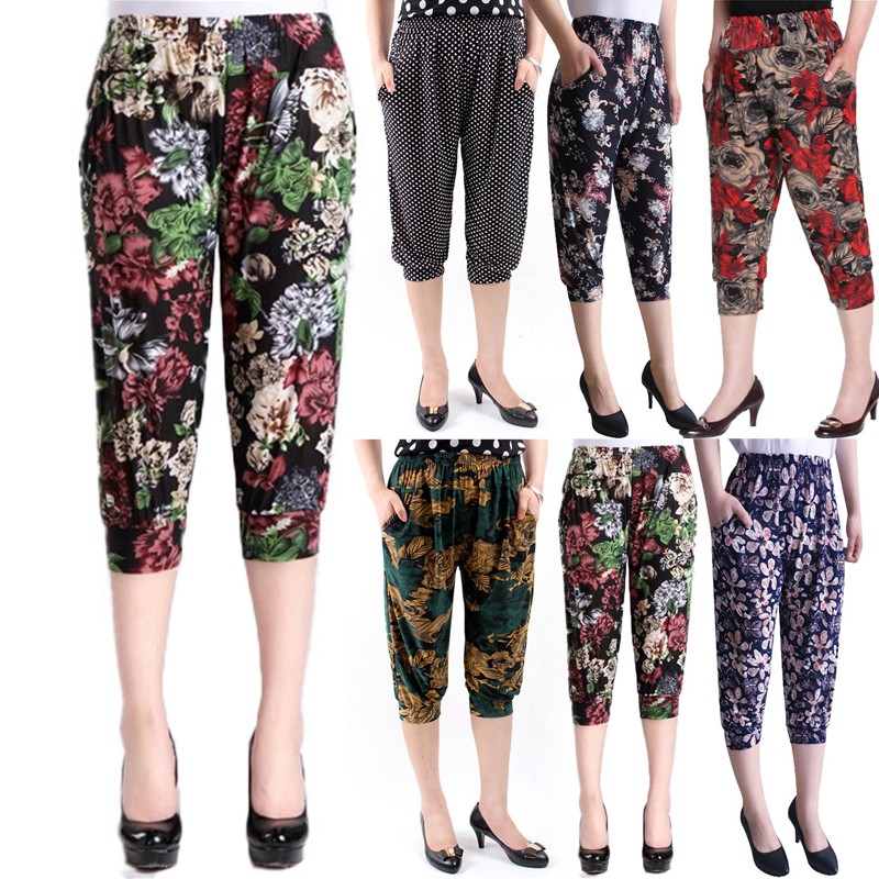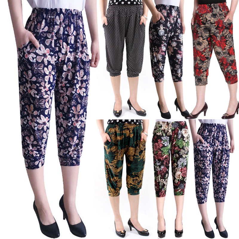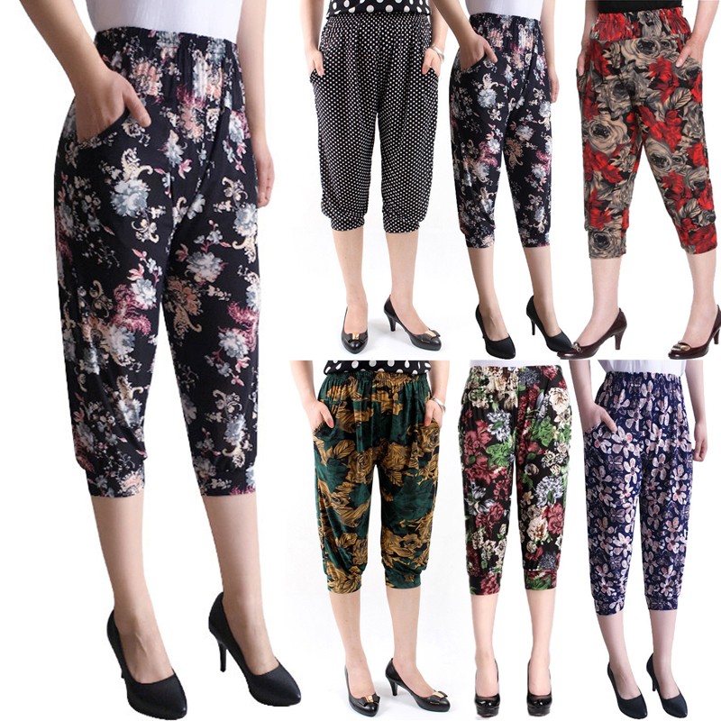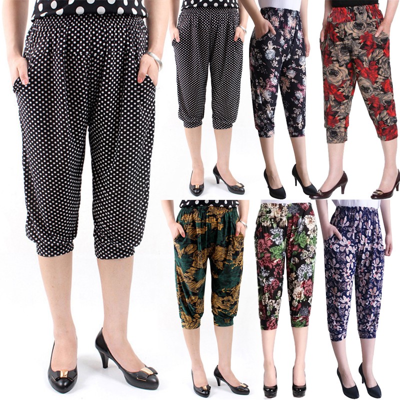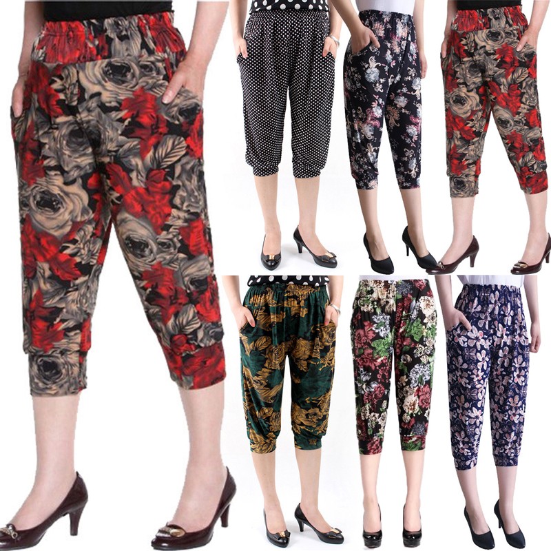 * Item Description: Women's Middle Aged Casual Harem Pants Elastic Waist Pockets Loose Trousers