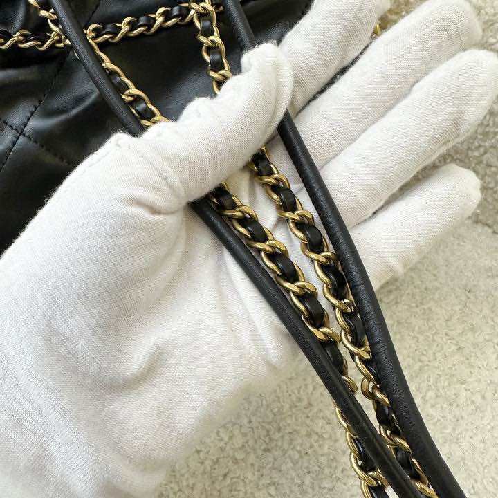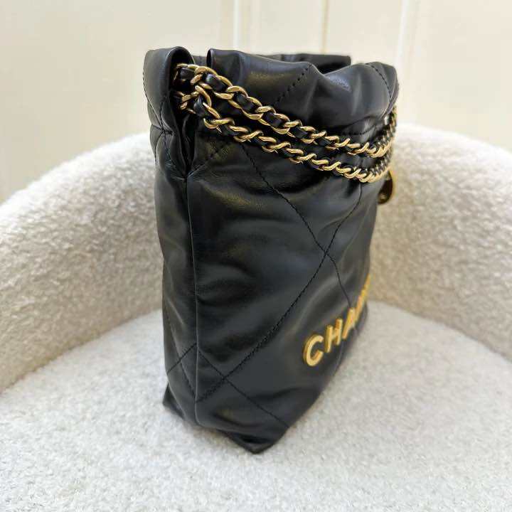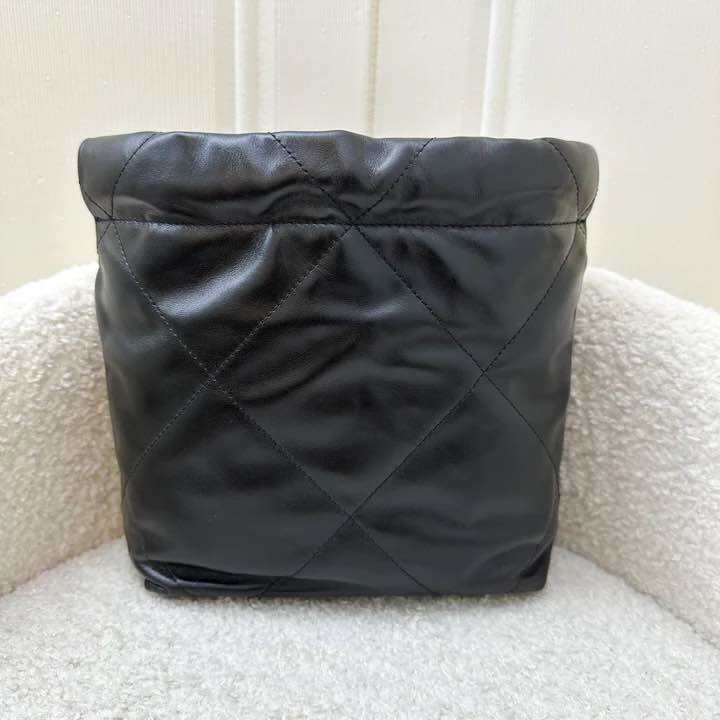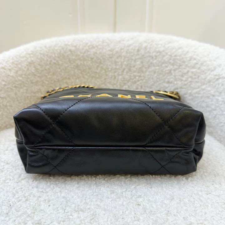 (Pre-loved) Chanel 22 Mini Hobo Handbag in Black Shiny Calfskin and AGHW