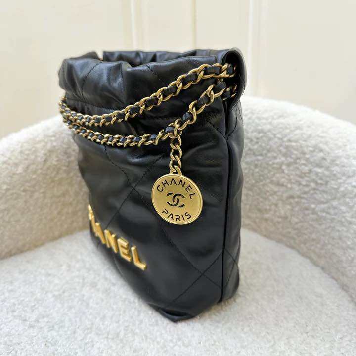 Est. Retail: $7500. Below retail for this chic Chanel 22 bag in mini size! Super popular and black is rather hard to get in boutiques. Long waitlists and mainly allocated to VIPs!