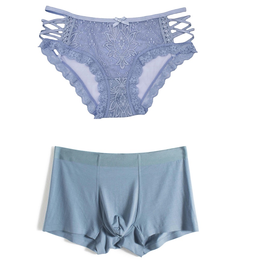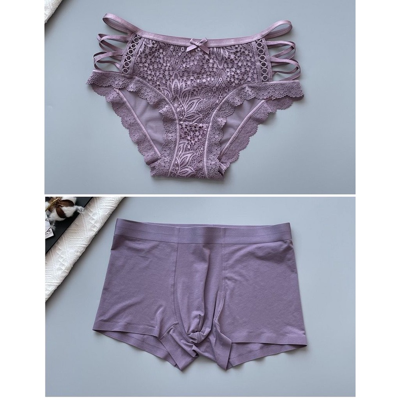 High Quality Couple Underwear Panties Set Sexy Purple High End Lace Women Panty Ice Silk Men Boxers Briefs Set Romantic Lovers Suit 2Pcs Breathable Cotton Fashion set for Wedding H xcc