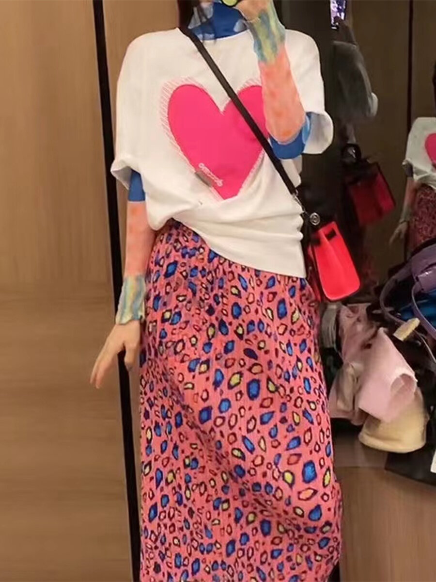Pleated Skirt a-Line Slit Midi Skirt Women's Summer Thin High Waist Loose and Slimming Pleated Skirt Floral Skirt