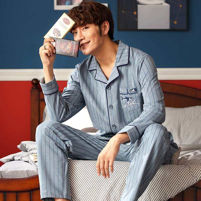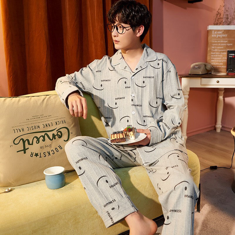 Nanjiren Pajamas Men's Comfort plus Size Youth Cotton Suit Korean Loose plus Size Homewear Spring/Autumn/Summer