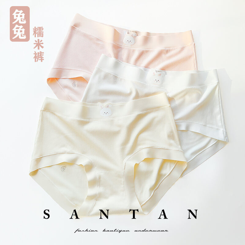 Soft Glutinous Rice Rabbit Cute Young Adult Adorable Rabbit Print Underwear Mid Waist Classic Briefs 5A Antibacterial Cotton Crotch