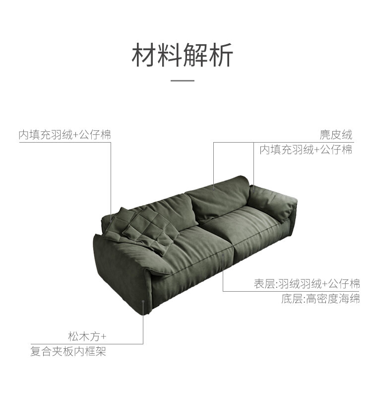 Baxter Scandinavian Elephant Ears Brushed Velvet Living Room Modern Minimalist Three-Seat Straight Row Small Apartment Fabric Sofa